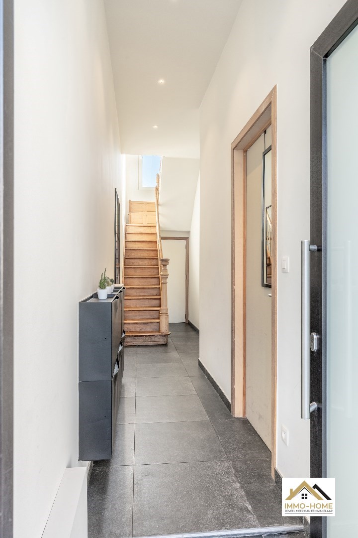 Schrijf u inDeze prachtig gerenoveerde en instapklare rijwoning ontvangt je in stijl in de ruime inkomhal (met gastentoilet). Zo kom je verder tot in de leefruimte met open leefkeuken. Deze keuken is voorzien van alle moderne comfort van kwaliteitsmerken (oa Bosch), en de tijdloze uitstraling past perfect bij de aansluitende leefruimte. Deze baadt in het natuurlijke daglicht door zowel een grote koepel als de gevelbrede en hoge raampartij achteraan. Op deze manier wordt ook het terras en de mooie stadstuin volledig visueel binnen getrokken, waardoor het ruimtelijke gevoel nog extra versterkt wordt. Op dat terras is het heerlijk genieten van het buitenleven en de natuur. Helemaal voorin de woning is er voorzien in een technische ruimte/wasplaats, die ook toegankelijk is via de inkomhal. Dat maakt ze dus ook geschikt als bvb fietsenstalling. Op de eerste verdieping vinden we de master bedroom en de badkamer met zowel ruime inloopdouche als ligbad. Op de bovenste verdieping is er plaats voor nog twee mooie slaapkamers, en daarbovenop is er ruimte voor een opbergzolder. Extra opbergmogelijkheden zijn er ook nog in het tuinhuis. Inschrijven voor bezoekdag via mail naar tommy@immo-home.be, geen telefonische inschrijvingen! Volg ons op Fb en Insta. Voor meer info: www.immo-home.be. GRATIS SCHATTING & GRATIS FINANCIEEL ADVIES