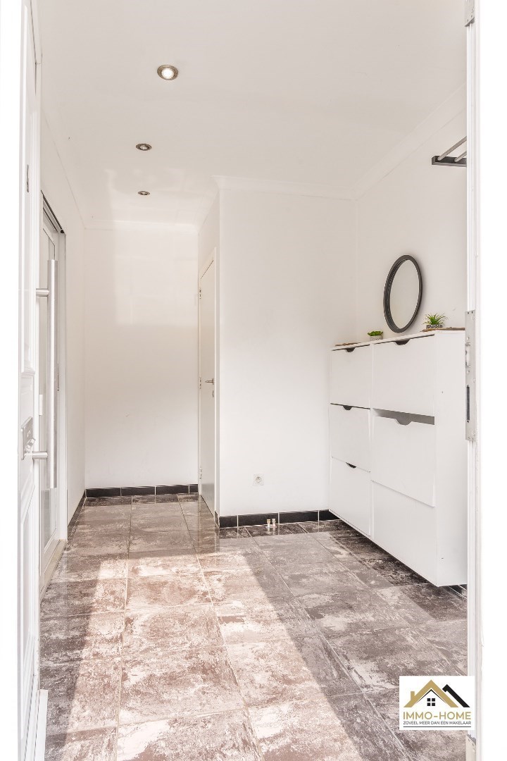 Schrijf u inAchter de eerder anonieme voorgevel van deze woning gaat een ware zee aan ruimte schuil. De inkomhal (met gastentoilet) brengt je via een schuifdeur tot in de zeer grote en lichtrijke leefruimte. Aanpalend bevindt zich een half afgesloten eetruimte en een grote leefkeuken. Deze is voorzien van alle comfort, en via het grote raam heb je een leuk contact met de tuin. Naast de keuken beschik je over een grote wasplaats/berging, en zo kom je ook tot in de garage. Op de eerste verdieping is er rond de overloop plaats voor drie zeer ruime slaapkamers. Via de master bedroom kom je in de alweer ruime badkamer, waar naast een ligbad ook een comfortdouche aanwezig is. Inschrijvingen via mail naar tommy@immo-home.be, geen telefonische inschrijvingen! Volg ons op Fb en insta. Voor meer info: www.immo-home.be