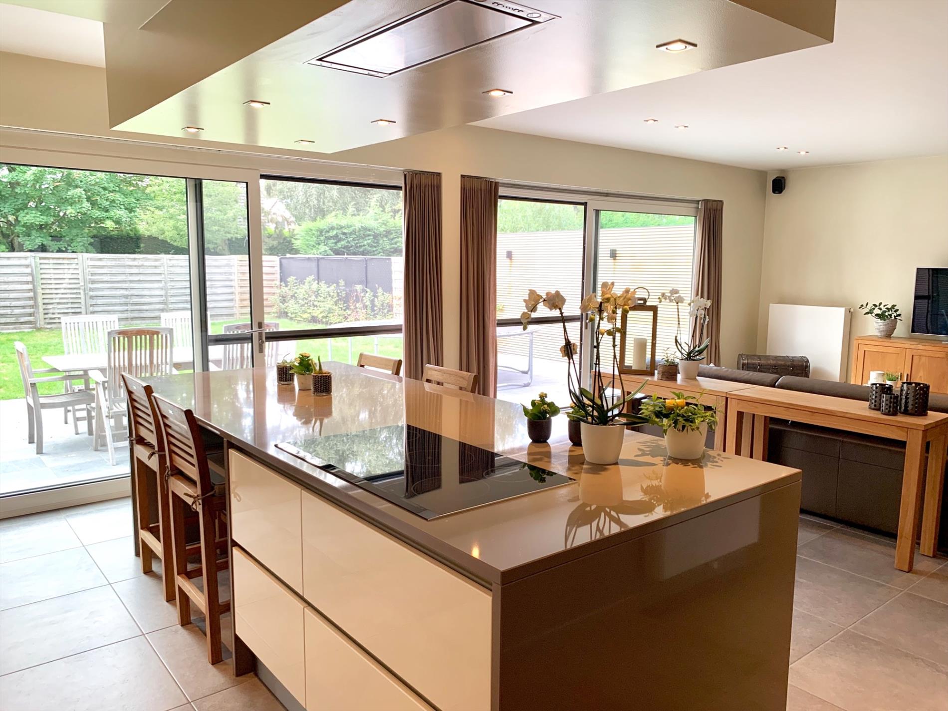 Schrijf u inIn hartje Waasmunster bevindt zich deze tot in de puntjes afgewerkte nieuwbouwwoning (2010). Van zodra u binnenkomt zal u versteld staan van zowel het volume als de luxe afwerking. Via de ruime inkomhal, incl gastentoilet loopt u langs de dubbele glazen deur door naar de zonovergoten ruime woonkamer, met aparte bureauruimte en prachtige open keuken met groot eiland. Over de gehele breedte zijn er schuiframen voorzien en heeft u uitzicht op de aangelegde, zuidgerichte tuin met zonneterras en tuinhuis/lounge.