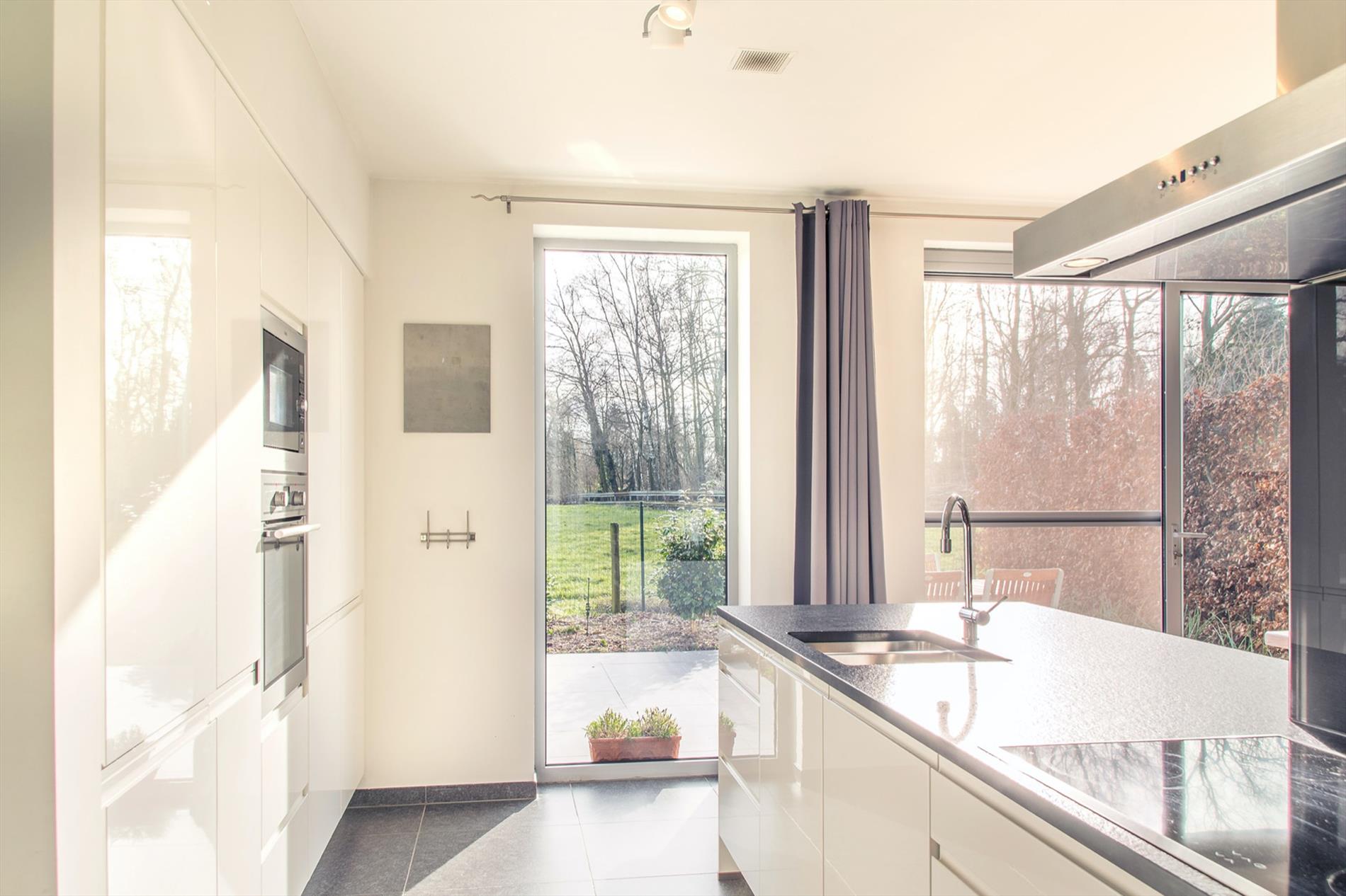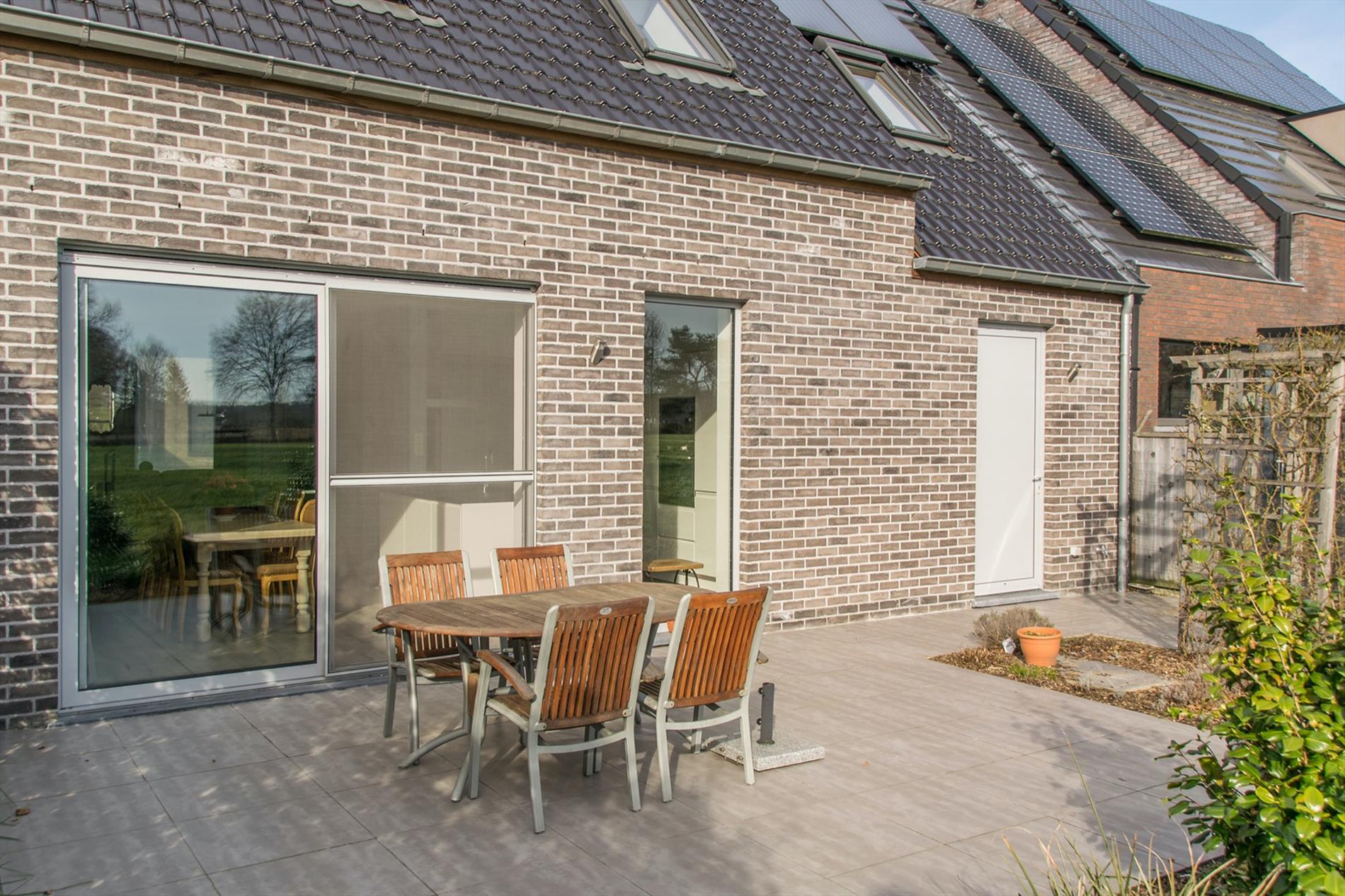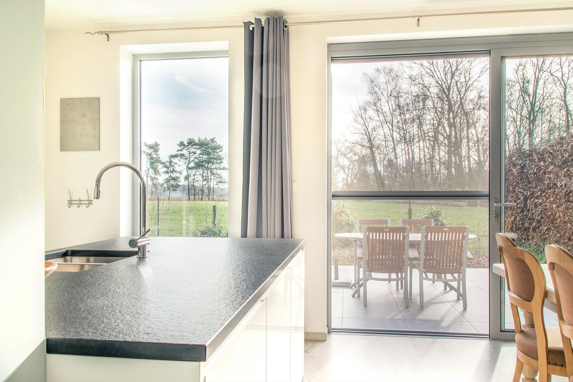 Deze rustig gelegen, recente woning (bouwjaar 2015) beschikt over een mooie open leefruimte met veel lichtinval door de grote raampartijen aan beide zijden van de living. De aansluitende strakke open keuken is voorzien van alle moderne comfort, en beschikt over een mooie ruime berging en directe toegang tot de garage. Daardoor hoef je met je boodschappen maar een paar stappen te zetten ! Maar dé extra troef bevindt zich buiten : je hebt vanuit de woning een fenomenaal uitzicht op een open, landelijke omgeving (landbouwgrond, kan dus nooit bebouwd worden !). De tuin is gezellig en praktisch aangelegd, waardoor je van dit panorama elke dag van het jaar kan genieten ! Via de hal (met gastentoilet) bereik je langs de met natuursteen afgewerkte betonnen trap geruisloos de eerste verdieping waar zich 3 ruime slaapkamers bevinden. De master bedroom beschikt bovendien over een aanpalende dressing. Ook in de stijlvolle badkamer ontbreekt het niet aan comfort, met zowel een groot bad, een inloopdouche mét jetstream als een mooi badkamermeubel met twee lavabo's en een tweede toilet. De grote zolder biedt tot slot een zee aan extra bergruimte, en de woning beschikt over maar liefst 15 zonnepanelen. De ruime garage met elektrisch bediende poort biedt achteraan nog bijkomende bergruimte, en ze heeft ook directe toegang tot de tuin.