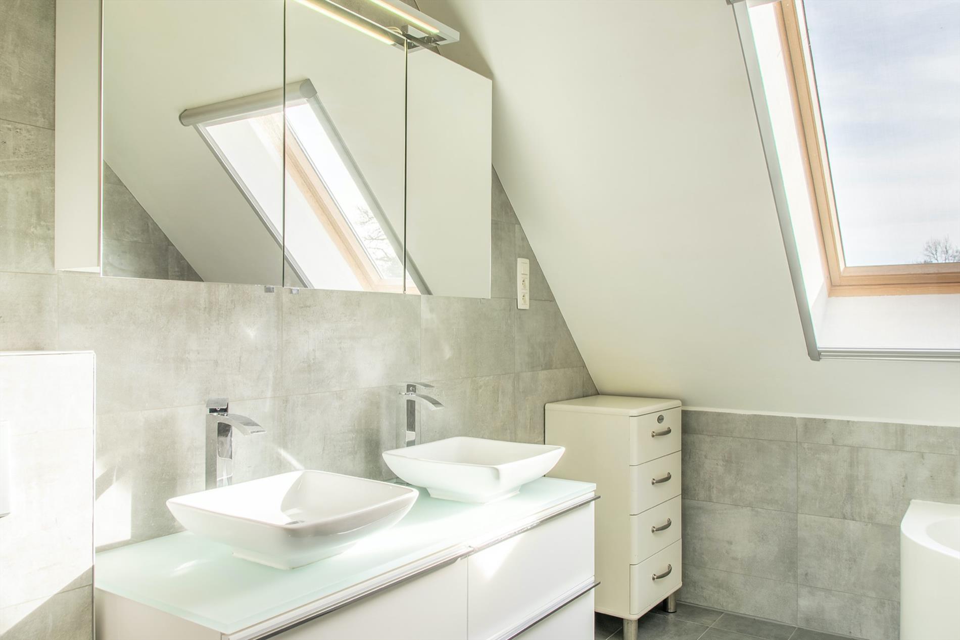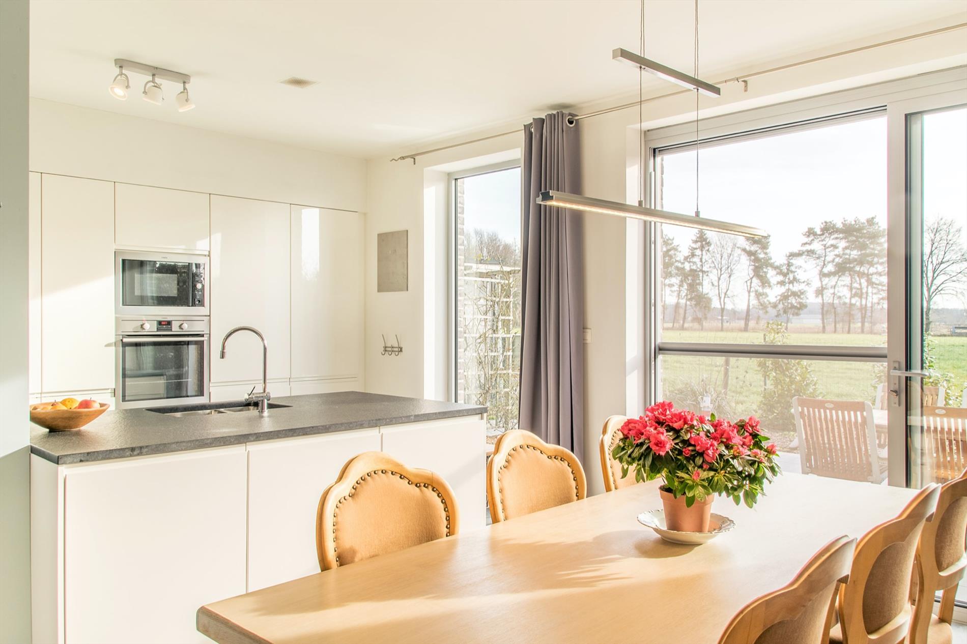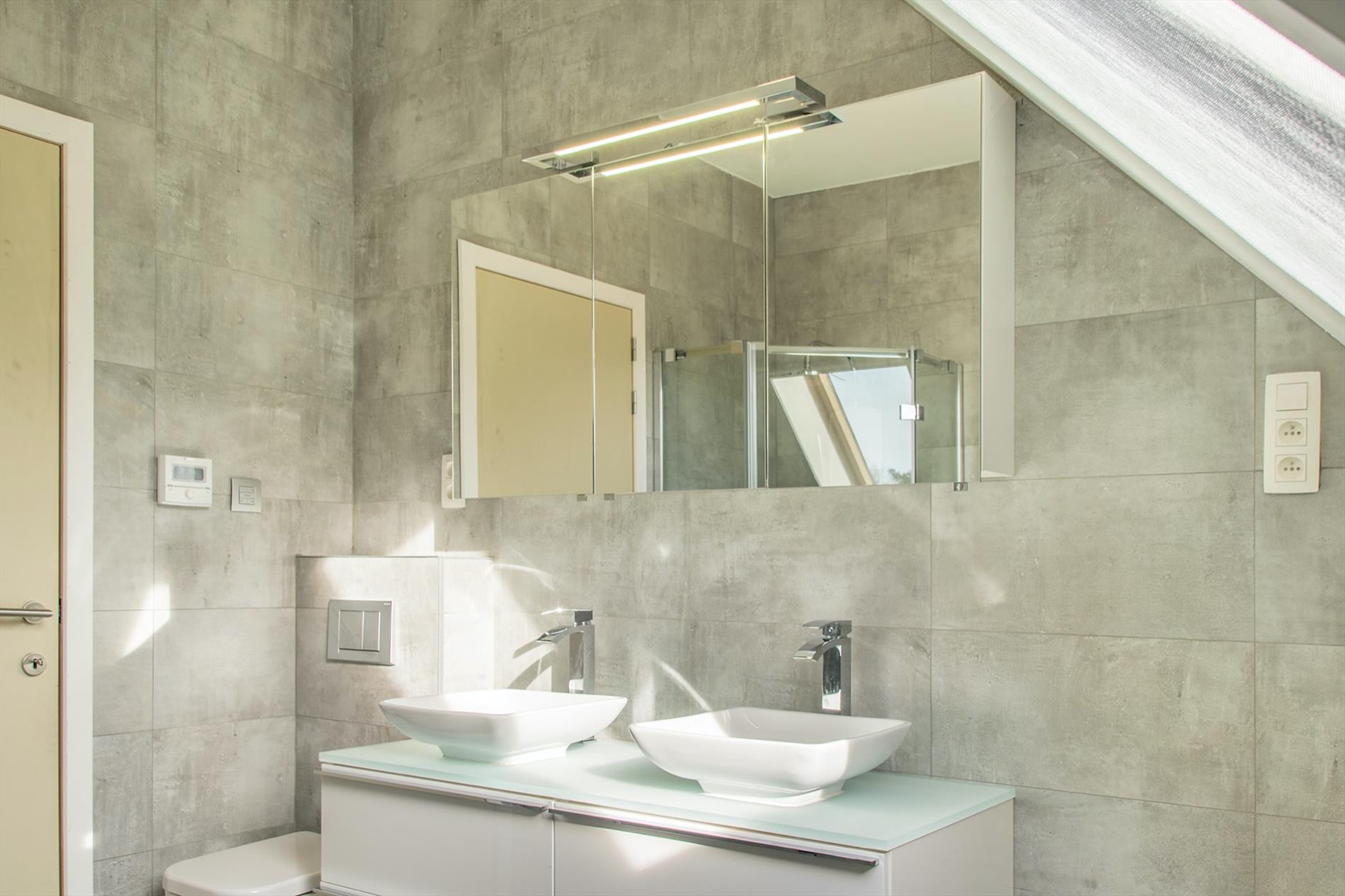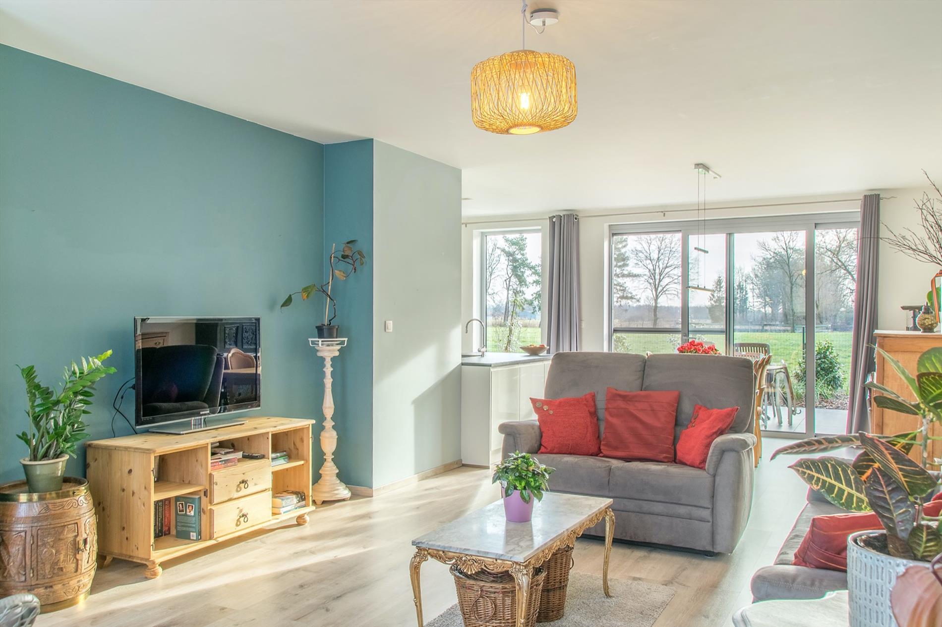 Deze rustig gelegen, recente woning (bouwjaar 2015) beschikt over een mooie open leefruimte met veel lichtinval door de grote raampartijen aan beide zijden van de living. De aansluitende strakke open keuken is voorzien van alle moderne comfort, en beschikt over een mooie ruime berging en directe toegang tot de garage. Daardoor hoef je met je boodschappen maar een paar stappen te zetten ! Maar dé extra troef bevindt zich buiten : je hebt vanuit de woning een fenomenaal uitzicht op een open, landelijke omgeving (landbouwgrond, kan dus nooit bebouwd worden !). De tuin is gezellig en praktisch aangelegd, waardoor je van dit panorama elke dag van het jaar kan genieten ! Via de hal (met gastentoilet) bereik je langs de met natuursteen afgewerkte betonnen trap geruisloos de eerste verdieping waar zich 3 ruime slaapkamers bevinden. De master bedroom beschikt bovendien over een aanpalende dressing. Ook in de stijlvolle badkamer ontbreekt het niet aan comfort, met zowel een groot bad, een inloopdouche mét jetstream als een mooi badkamermeubel met twee lavabo's en een tweede toilet. De grote zolder biedt tot slot een zee aan extra bergruimte, en de woning beschikt over maar liefst 15 zonnepanelen. De ruime garage met elektrisch bediende poort biedt achteraan nog bijkomende bergruimte, en ze heeft ook directe toegang tot de tuin.