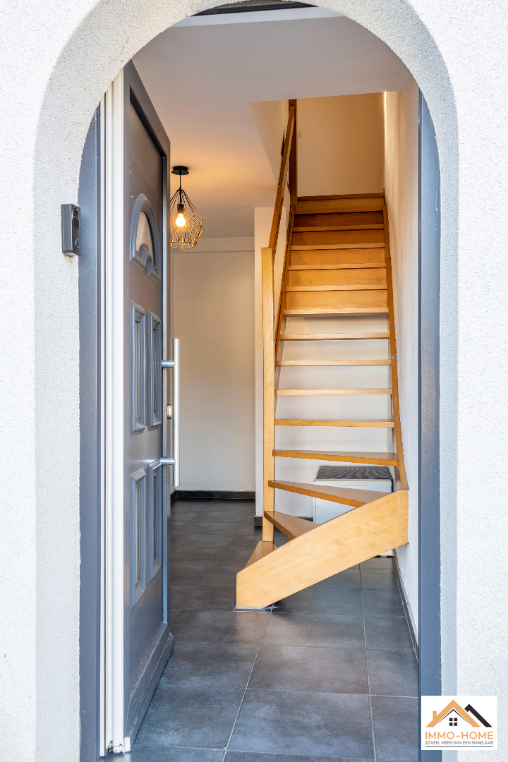 Schrijf u inDeze mooi gerenoveerde woning is perfect instapklaar. Via de inkomhal (met een kleine berging) kom je in een zeer aangename leefruimte, met aan beide zijden een mooie lichtinval. De praktische open keuken is handig ingedeeld, en de stijlvolle haard waar de pelletkachel een mooie plaats heeft gekregen is een echte eyecatcher. Op de eerste verdieping beschik je rond de overloop over twee ruime slaapkamers en een badkamer met ligbad en een tweede toilet. Daarbovenop is er op de handige zolder veel extra bergruimte. Via de achterdeur in de keuken kom je in de leuke lounge met terras en de zuid-gerichte tuin. Extra troef is dat de tuin en de garage bereikbaar zijn via een achtergelegen weg. Daar beschik je over meerdere extra parkeerplaatsen, en in de garage is er bijkomende opbergruimte. Bezoekdag 17/12: Inschrijvingen via mail naar tommy@immo-home.be, geen telefonische inschrijvingen! Volg ons op Fb en insta. Voor meer info: www.immo-home.be