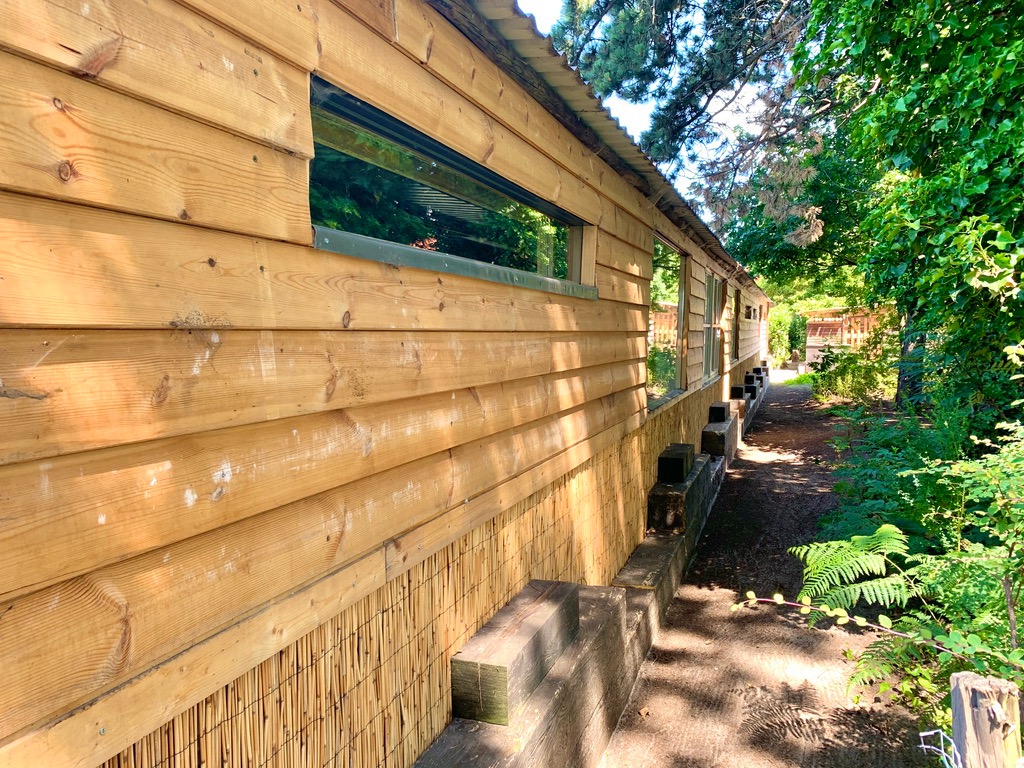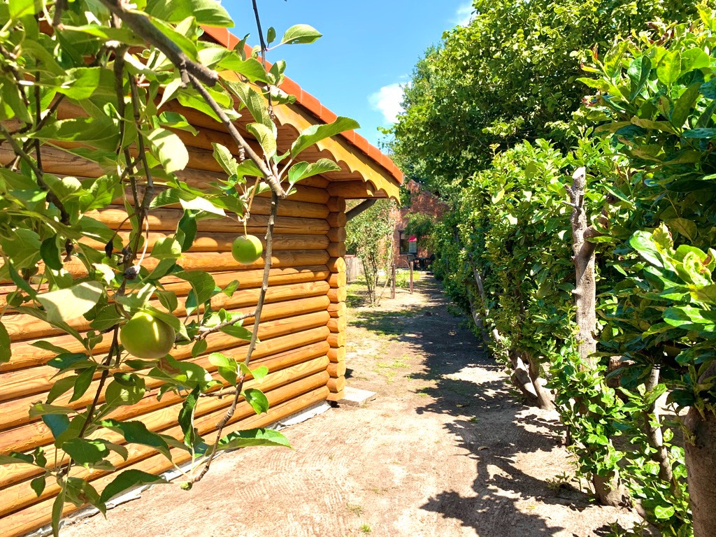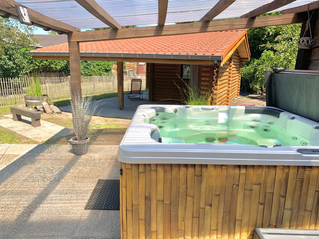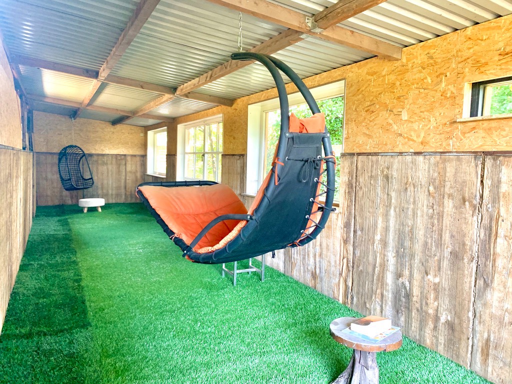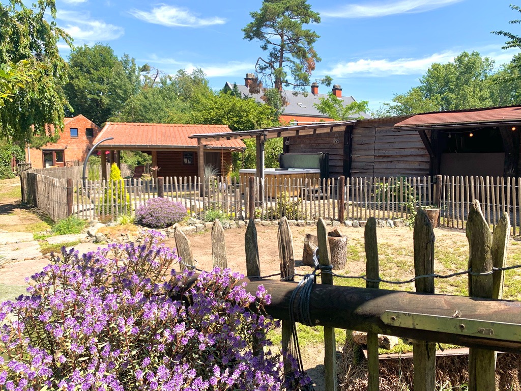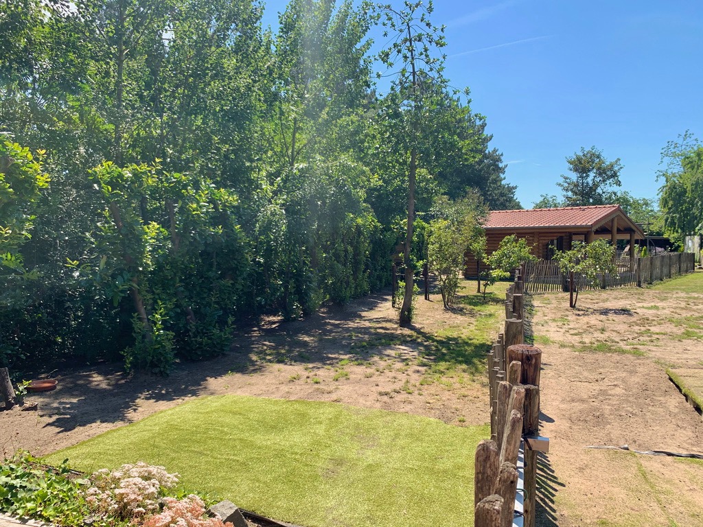 De tuin is momenteel ingedeeld in een groot tuinhuis met overdekt terras, overdekte jacuzzi, dompelbad, enorm grote pas gerenoveerde stallingen die ingedeeld zijn in lounge-ruimte, fitnessruimte en extra opbergruimte. Vanuit de zonovergoten tuin heeft u een prachtig landelijk uitzicht. Via het poortje van de volledig afgesloten tuin komt u in het sprookjesachtige bos terecht met de verschillende wandelpaden die u rondom begeleiden naar de kleine houten huisjes en de bankjes met uitzicht op de velden waar u bij warmere dagen verkoeling kan opzoeken. De eekhoorntjes huppelen ondertussen langs uw benen de bomen in.