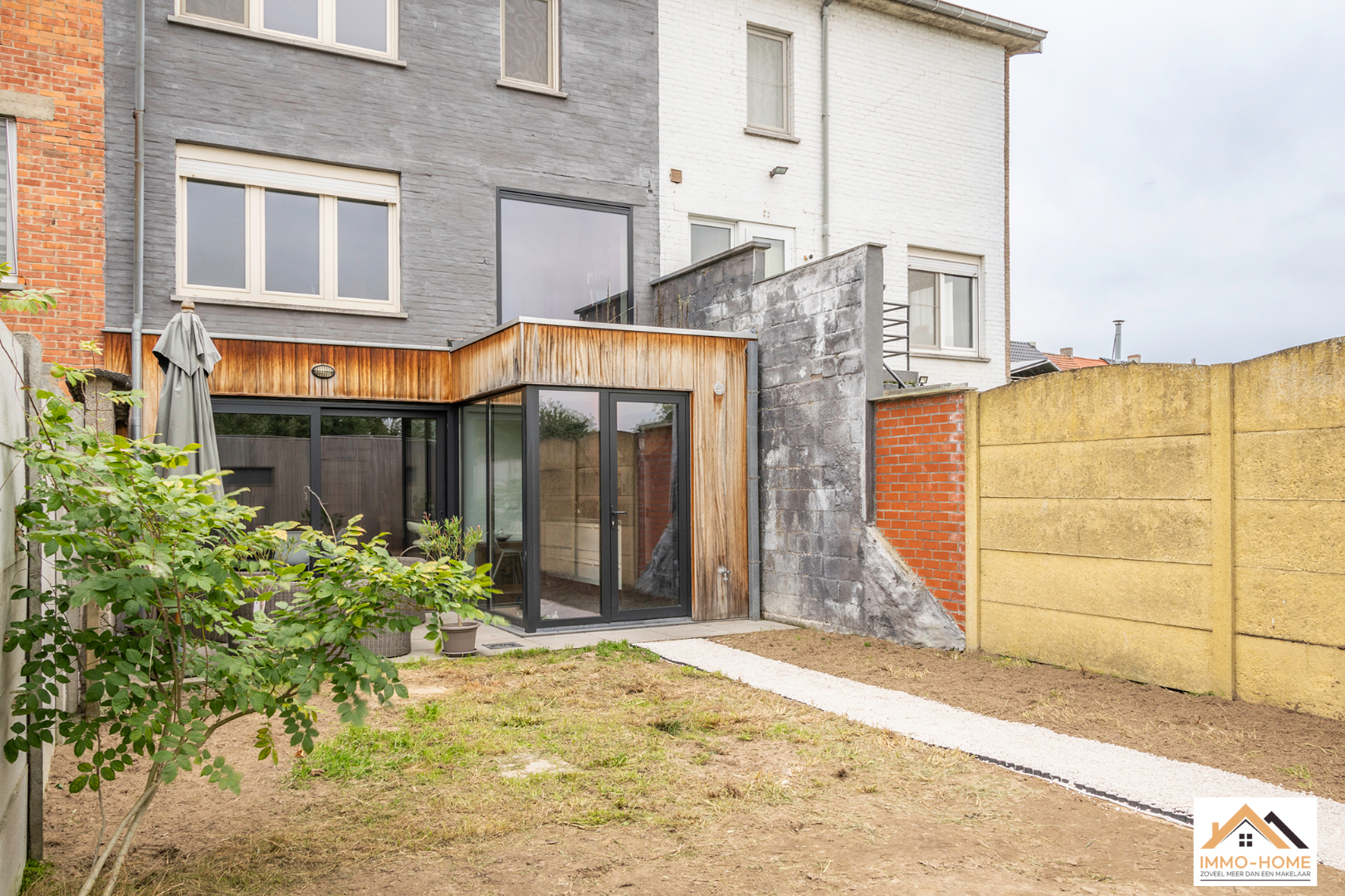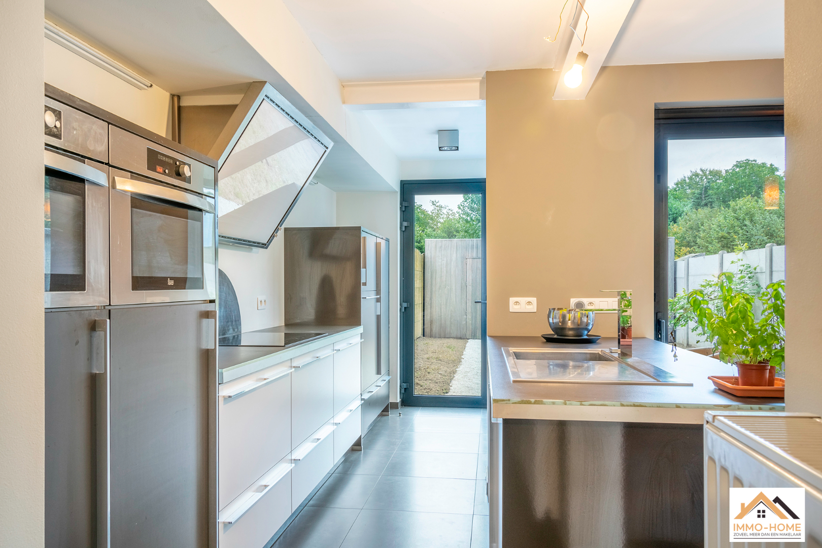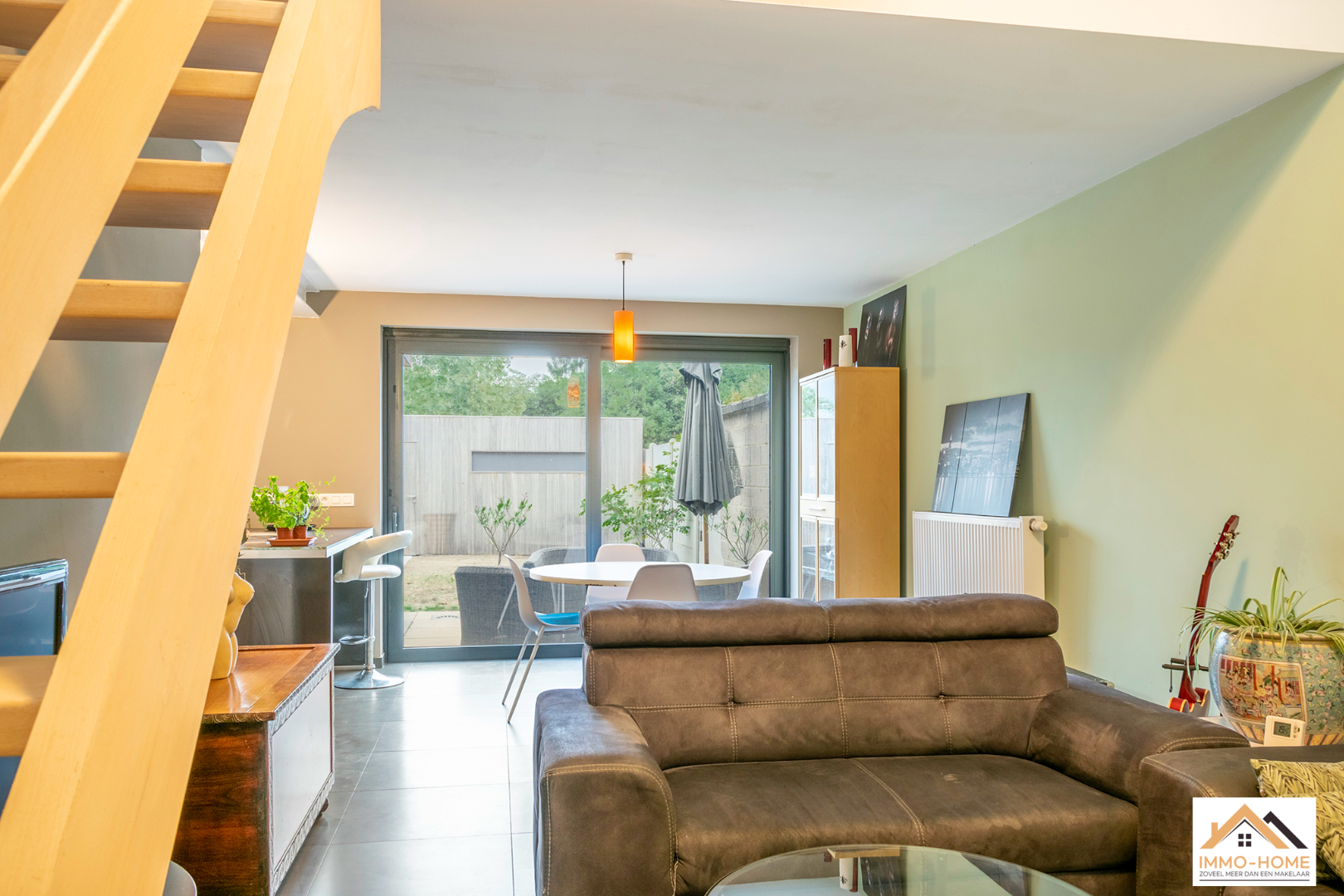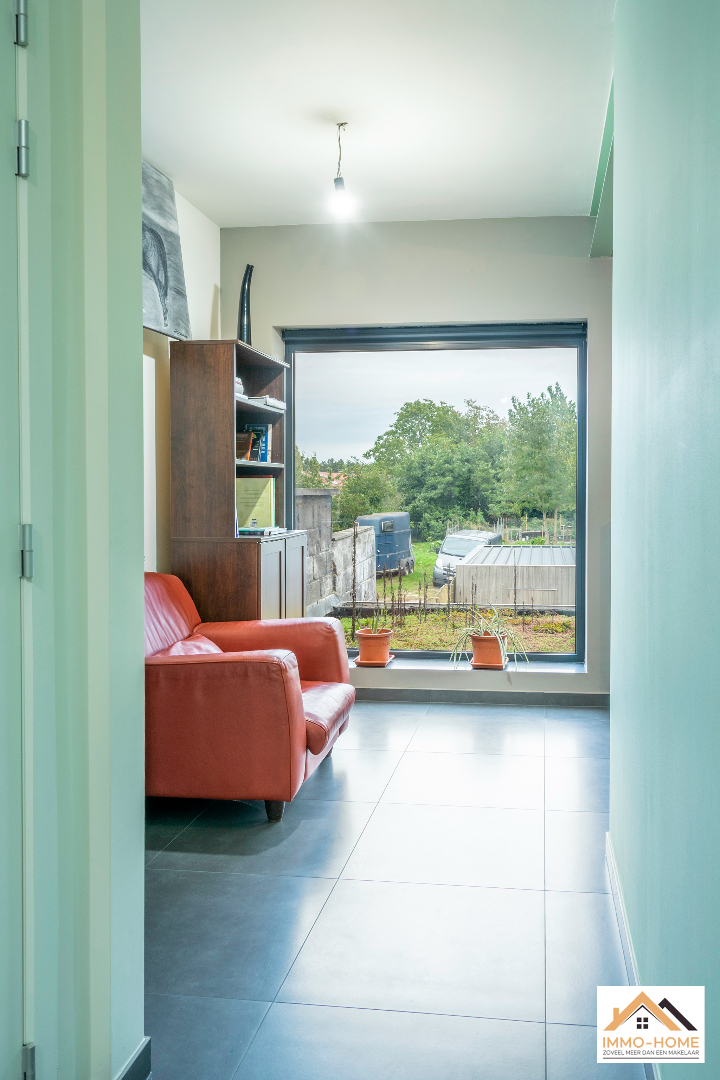 Schrijf u inAchter de anonieme gevel van deze rijwoning zit een verrassende parel verborgen. De inkomhal is het centrale punt van de woning, je merkt hier al meteen dat het daglicht doorheen de volledige woning zijn weg kan vinden. Via een trap kom je op het niveau eronder in een lichtrijke leefruimte terecht, die door de grote raampartijen uitkijkt op de tuin. De open keuken is voorzien van alle moderne comfort en met een handige berging/wasplaats. Ook het gastentoilet bevindt zich op dit niveau. Op het oude gelijkvloers is er een aangename multifunctionele ruimte met zithoek ingericht, met heel veel lichtinval en een mooi uitzicht op het achterliggende groen. De verdieping erboven wordt gevuld met twee grote slaapkamers, waarvan één met een aansluitende badkamer. Een tweede badkamer (met extra toilet) is nog af te werken, de leidingen zijn alvast voorzien. Achteraan in de tuin staat een nieuwe grote garage met automatische poort, die bereikbaar is via een gemeenschappelijke private weg naast het woningblok. Bezoekdag 17/12: Inschrijvingen via mail naar tommy@immo-home.be, geen telefonische inschrijvingen! Volg ons op Fb en insta. Voor meer info: www.immo-home.be