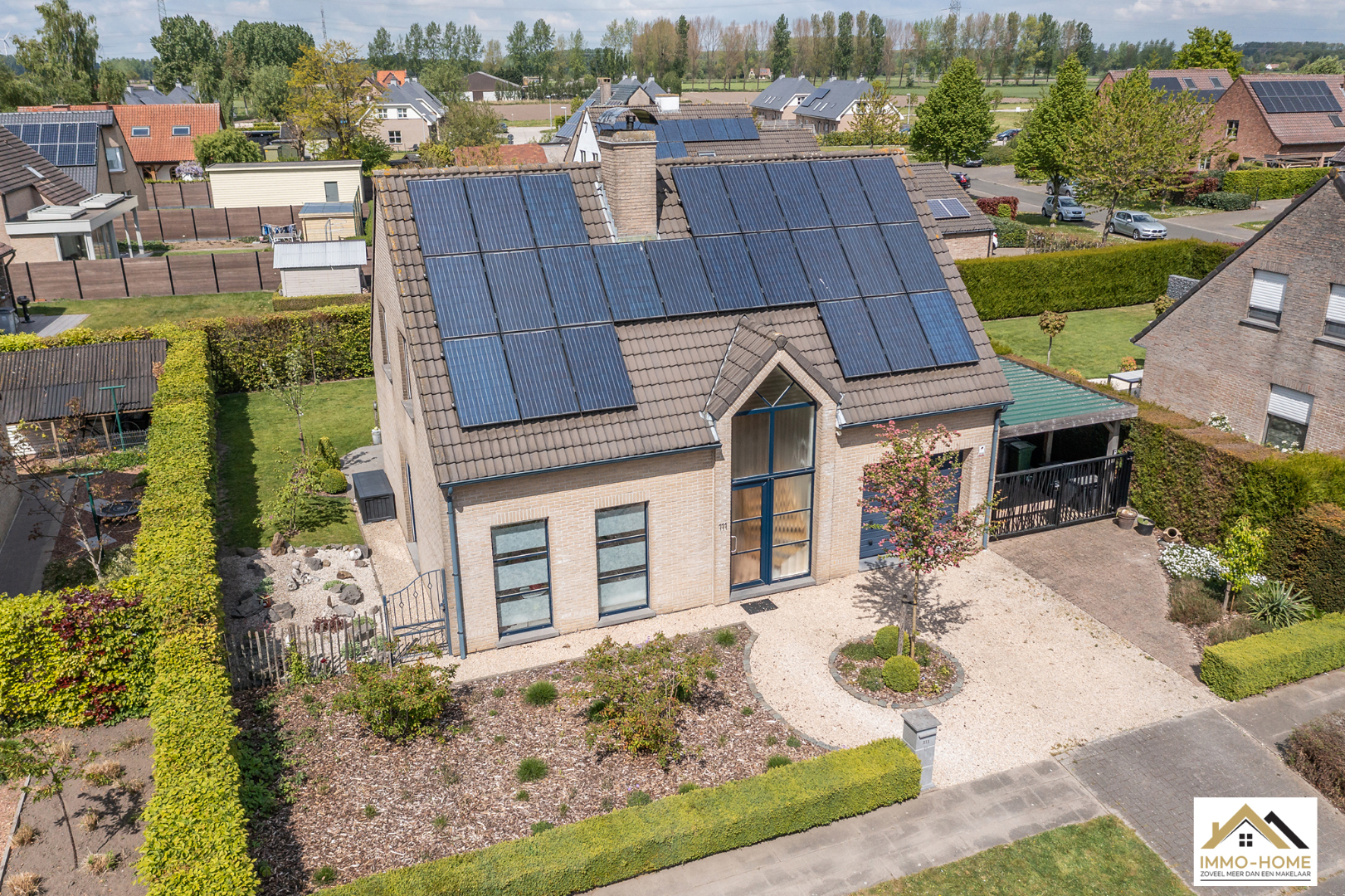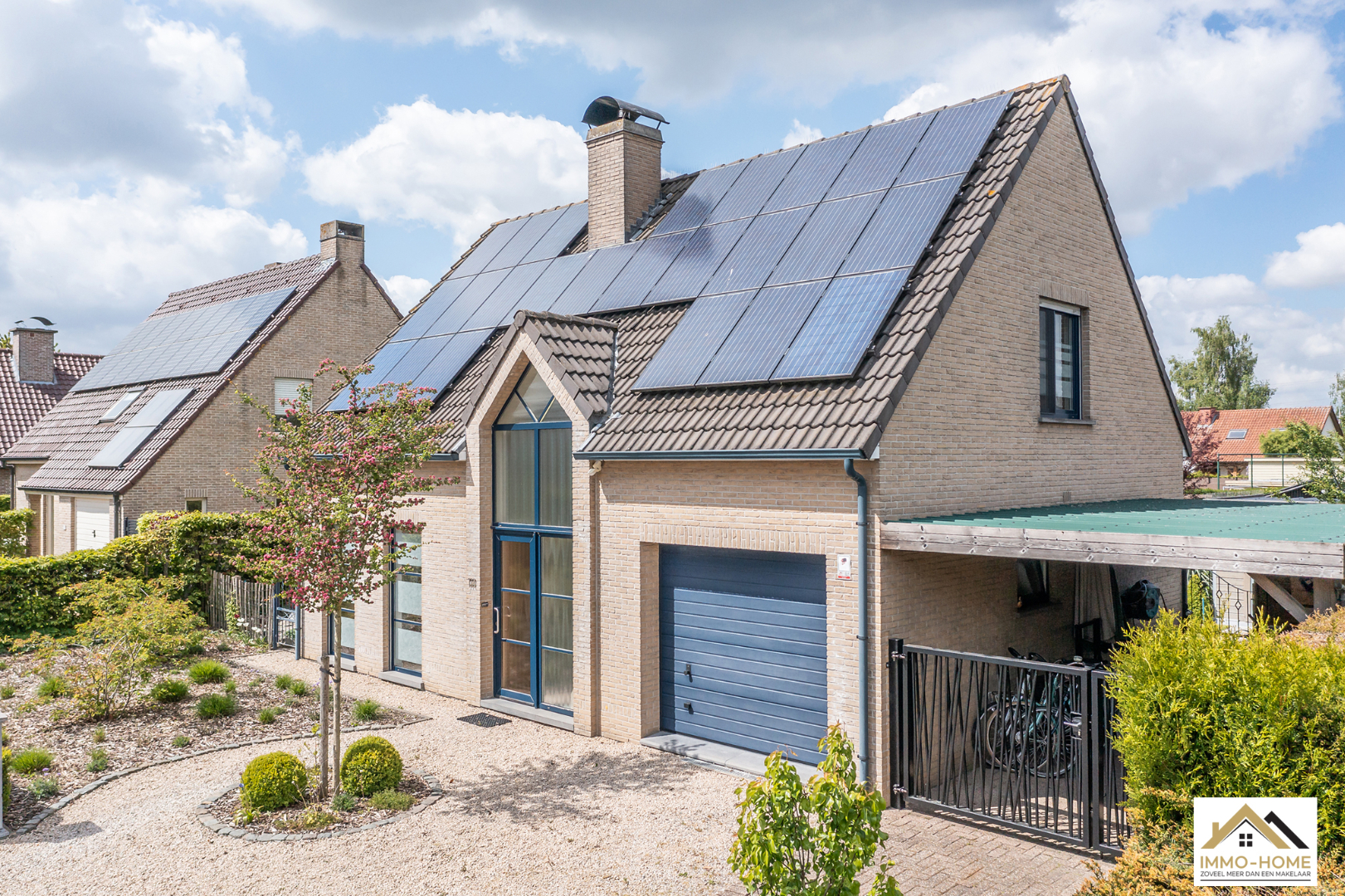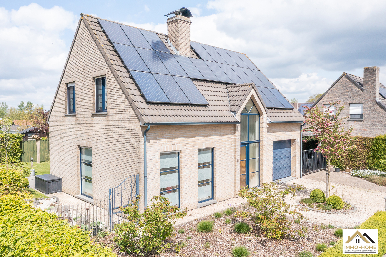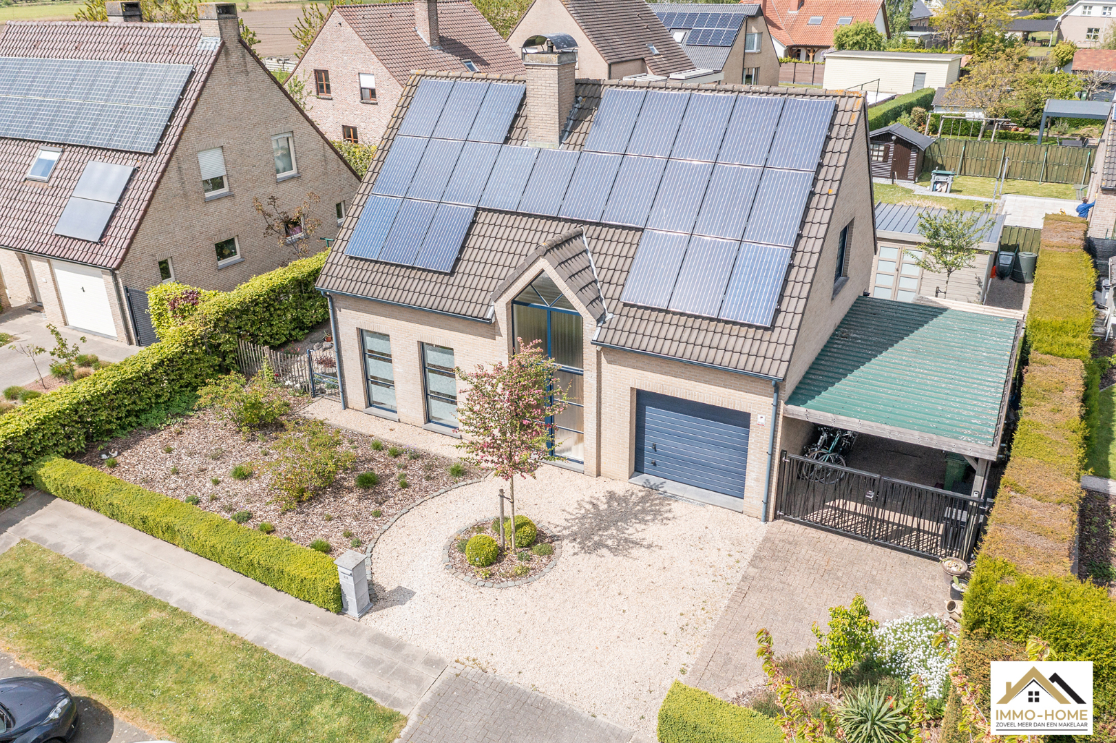 Schrijf u inDeze perfect onderhouden en dus instapklare villa is gelegen in een zeer rustige buitenwijk in Zaffelare, op wandelafstand van veel landelijk groen. Via de riante inkomhal met gastentoilet, kom je in de zeer lichtrijke leefruimte, waar door de grote glaspartijen overal een aangenaam contact is met de tuin. Een groot schuifraam verschaft toegang tot het gezellige terras en de mooie tuin. De aansluitende keuken is voorzien van alle comfort en langs deze weg kom je in de ruime garage met automatische poort, waar ook ruimte is voor een wasplaats/berging. Op de eerste verdieping is er, rond de overloop, ruimte voor drie mooie slaapkamers en een badkamer met ligbad, douche, dubbele lavabo en tweede toilet. Daarbovenop is er op de zolder extra bergruimte. Naast de woning bevindt zich nog een handige carport en een modern tuinhuis maakt het plaatje compleet. Je eigen energie wek je op met 24 zonnepanelen. VOOR BEZOEK inschrijven via mail naar info@immo-home.be, geen telefonische inschrijvingen! Volg ons op Fb en insta. Voor meer info: www.immo-home.be