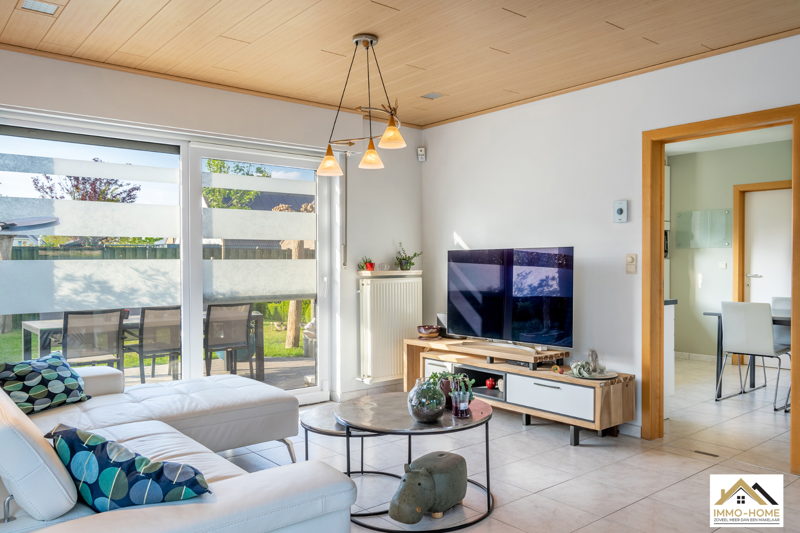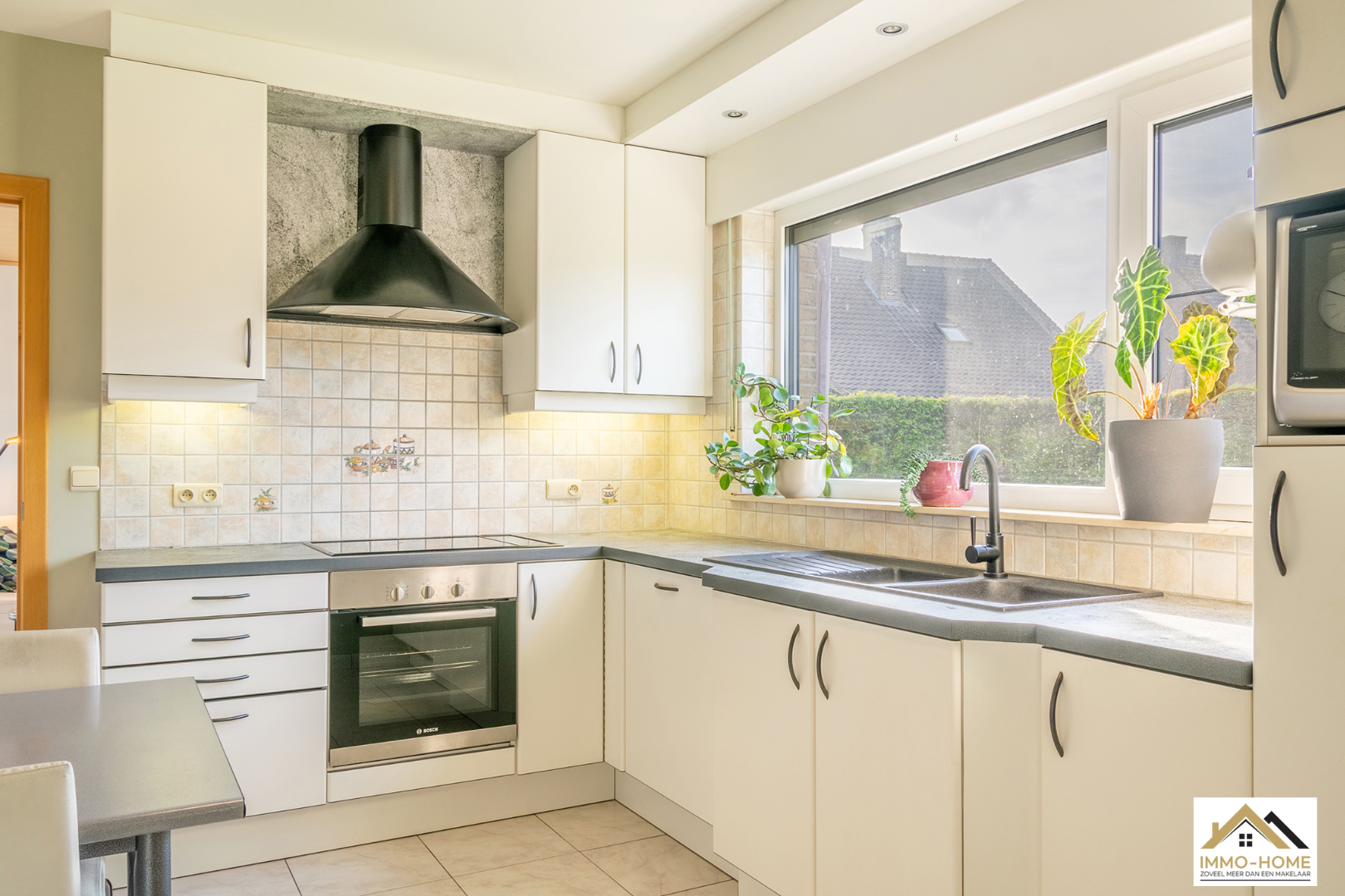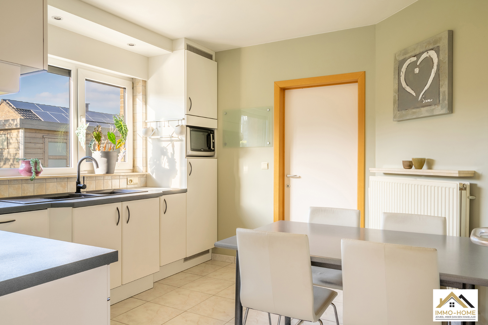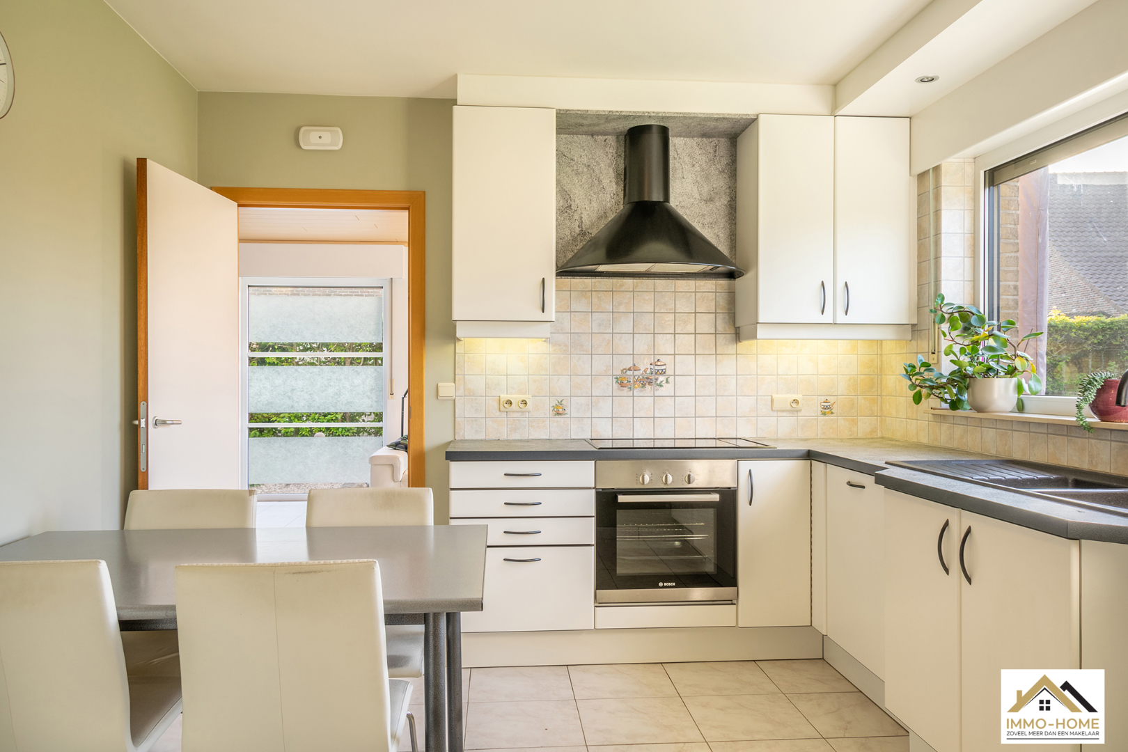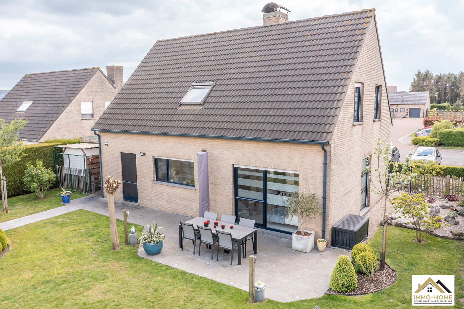 Schrijf u inDeze perfect onderhouden en dus instapklare villa is gelegen in een zeer rustige buitenwijk in Zaffelare, op wandelafstand van veel landelijk groen. Via de riante inkomhal met gastentoilet, kom je in de zeer lichtrijke leefruimte, waar door de grote glaspartijen overal een aangenaam contact is met de tuin. Een groot schuifraam verschaft toegang tot het gezellige terras en de mooie tuin. De aansluitende keuken is voorzien van alle comfort en langs deze weg kom je in de ruime garage met automatische poort, waar ook ruimte is voor een wasplaats/berging. Op de eerste verdieping is er, rond de overloop, ruimte voor drie mooie slaapkamers en een badkamer met ligbad, douche, dubbele lavabo en tweede toilet. Daarbovenop is er op de zolder extra bergruimte. Naast de woning bevindt zich nog een handige carport en een modern tuinhuis maakt het plaatje compleet. Je eigen energie wek je op met 24 zonnepanelen. VOOR BEZOEK inschrijven via mail naar info@immo-home.be, geen telefonische inschrijvingen! Volg ons op Fb en insta. Voor meer info: www.immo-home.be