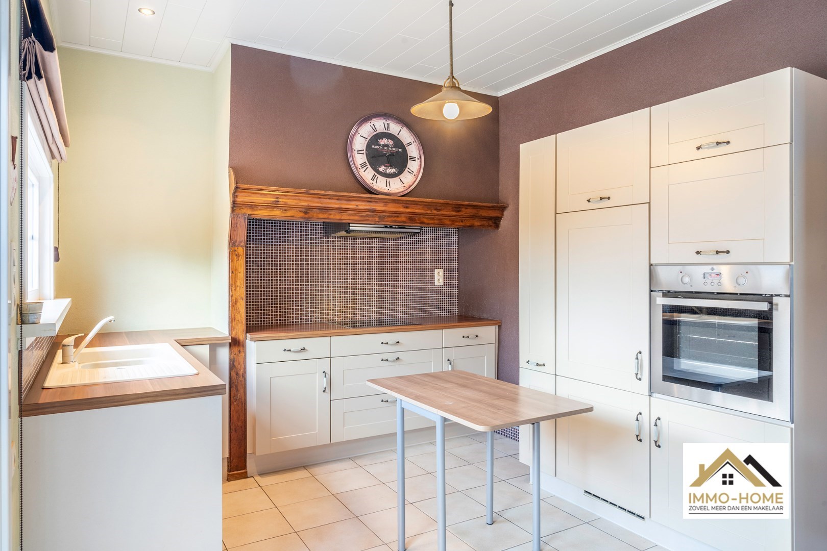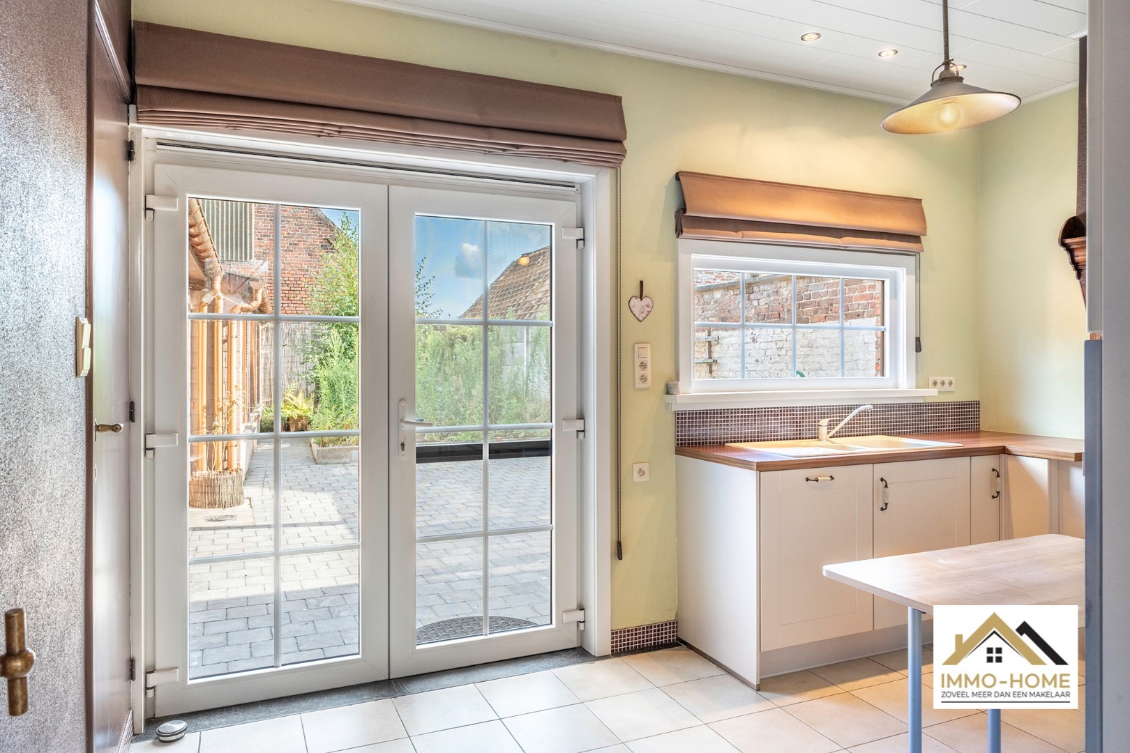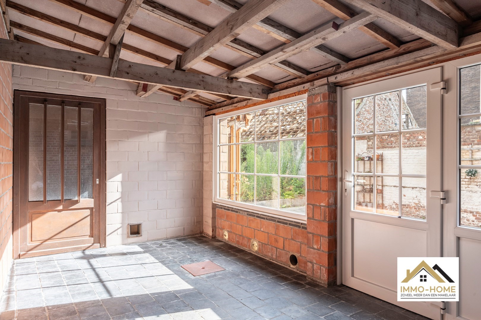 Schrijf u inDit reeds deels gerenoveerde pand bevindt zich in de dorpskom van het landelijke Zaffelare. Je komt binnen in de grote leefruimte, met een haardplaats als centrale aandachtstrekker. De aanpalende keuken is praktisch ingericht en van hieruit heb je een heel leuk contact met het terras en de kleine tuin. Via de trap passeer je de badkamer, waar er naast de douche en het toilet ook plaats is voor de wasmachine, en zo kom je tot op de zolderverdieping die nu is ingericht als enige slaapkamer. Alle aansluitingen zijn voorzien, net als heel wat ingemaakte kasten en een aparte bureelruimte. De zichtbare authentieke dakstructuur zorgt voor een speciale sfeer en beleving. Achteraan de woning is er een recent bijgebouw, waar momenteel een overdekt terras is ondergebracht dat mooi aansluit op het buitengedeelte. Daarnaast is er een ruime multifunctionele werkplaats/opslagruimte voorzien, en nog meer opbergruimte is er in de kelder. Inschrijvingen via mail naar larissa@immo-home.be , geen telefonische inschrijvingen! Volg ons op Fb en insta. Voor meer info: www.immo-home.be GRATIS SCHATTING GRATIS FINANCIEEL ADVIES