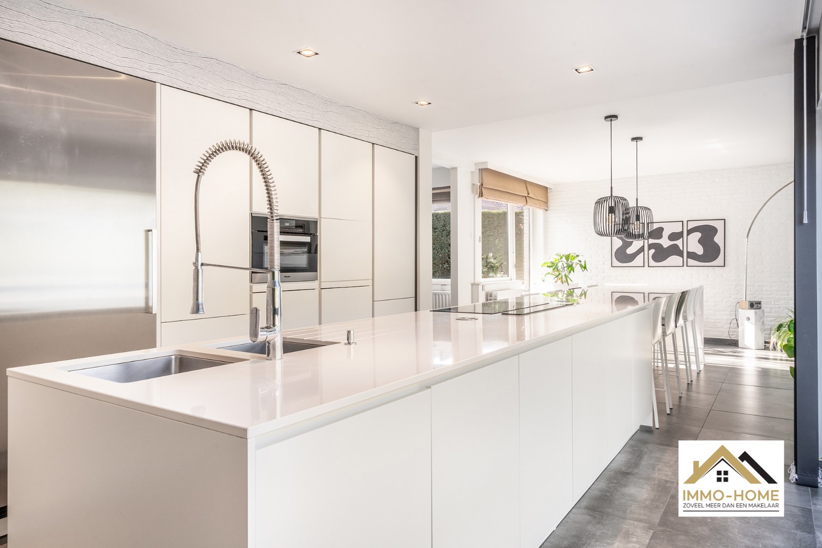 Deze woning werd prachtig gerenoveerd tot een eigentijds pand, waarbij heel veel zorg werd besteed aan modern wooncomfort in combinatie met veel openheid. De riante inkomhal (met gastentoilet) leidt je via een polyvalente ruimte tot in de volledig open leefruimte. De keuken - die voorzien is van alle moderne kookcomfort - met gigantisch kookeiland vormt het centrale punt, maar de zithoek moet zeker niet aan charme onderdoen. De zeer grote raampartijen zorgen ervoor dat de tuin (zonder enige inkijk) een natuurlijke verlenging van de woning vormt, en dit het jaar rond. Naast de keuken is er voorzien in twee opbergruimtes, en zo kom je ook verder tot in het tweede deel van het gelijkvloers dat bestaat uit twee slaapkamers (waarvan de master bedroom inclusief een grote dressing) en de badkamer met ligbad. Op de eerste verdieping vinden we rond de mooie overloop nog twee zeer ruime slaapkamers terug. Extra opbergruimte is er op een handige zolder, en de inpandige garage biedt plaats voor twee wagens. De woning is omgeven door een prachtig aangelegde en onderhouden tuin, waar je dus in alle privacy kan genieten van het buitenleven. Laadpaal is ook voorzien. Bezoekdag 4/4. Inschrijven via mail naar stefan@immo-home.be, geen telefonische inschrijvingen! Volg ons op Fb en Insta. Voor meer info: www.immo-home.be. GRATIS SCHATTING & GRATIS FINANCIEEL ADVIES