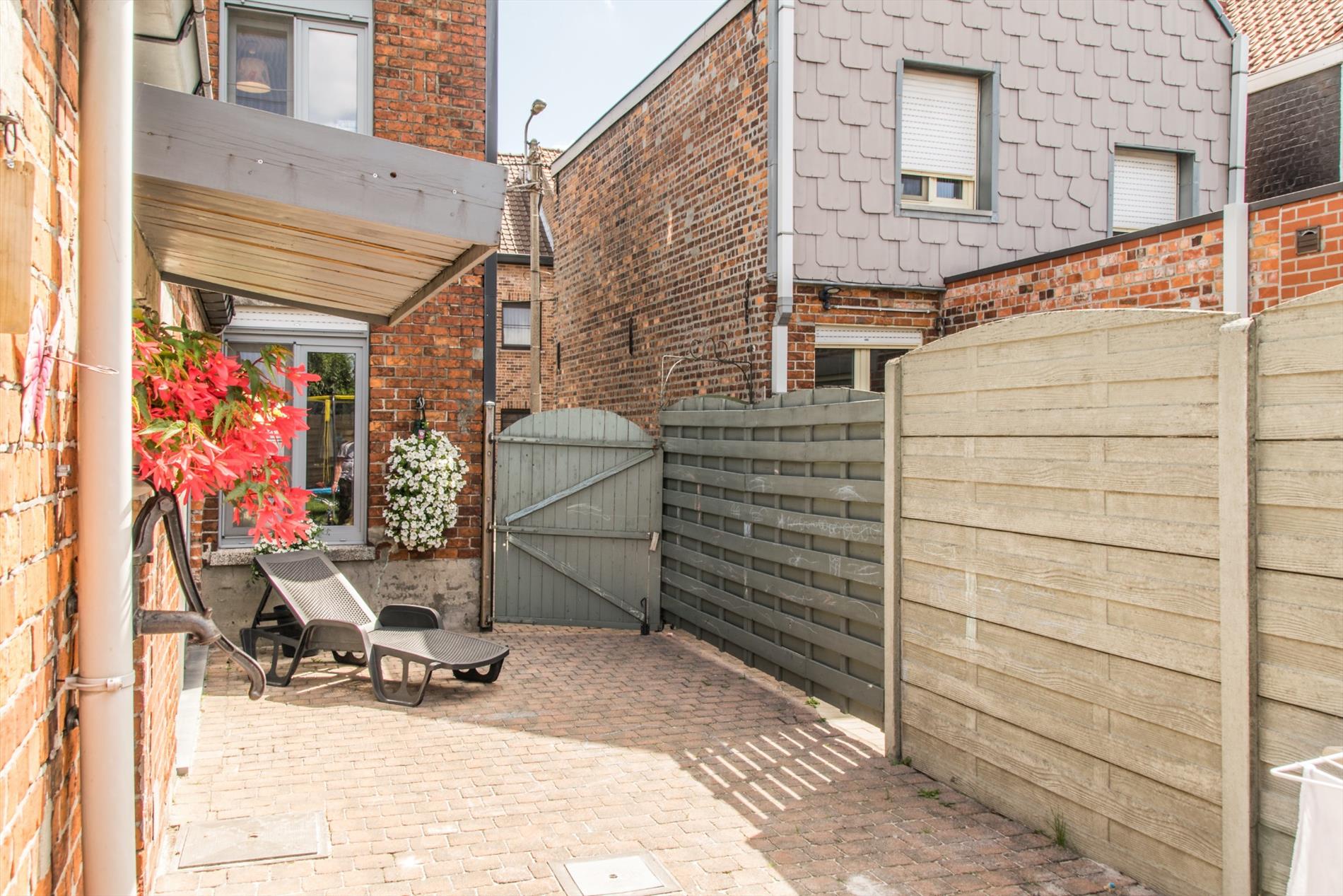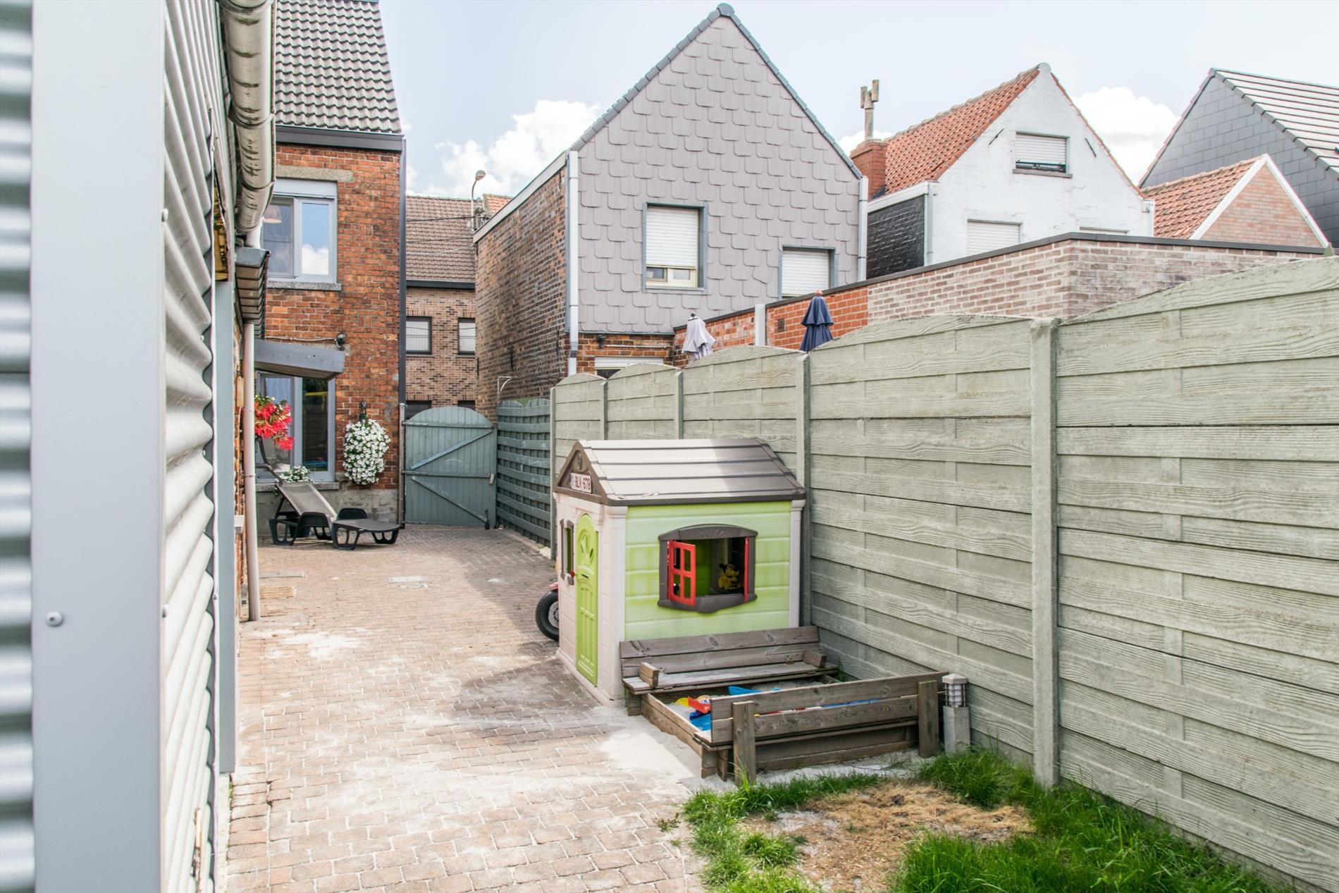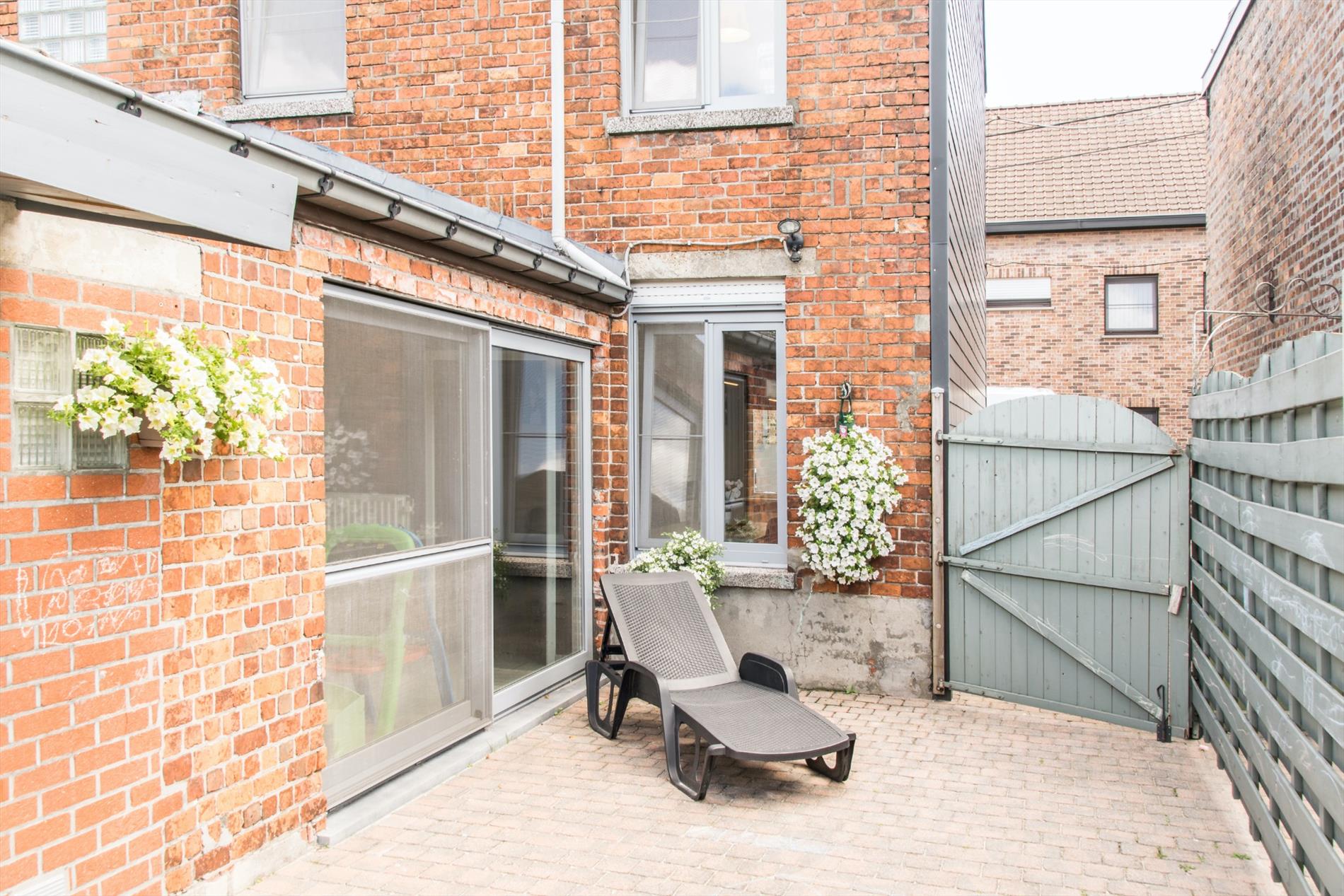Via de keuken heb je ook toegang tot het gezellige terras en de vrij ruime tuin, waar je bijna gans de dag van het zonlicht kan genieten ! Hier bevindt zich ook nog een extra bergruimte, en het huis beschikt bovendien ook nog over een handige kelder.