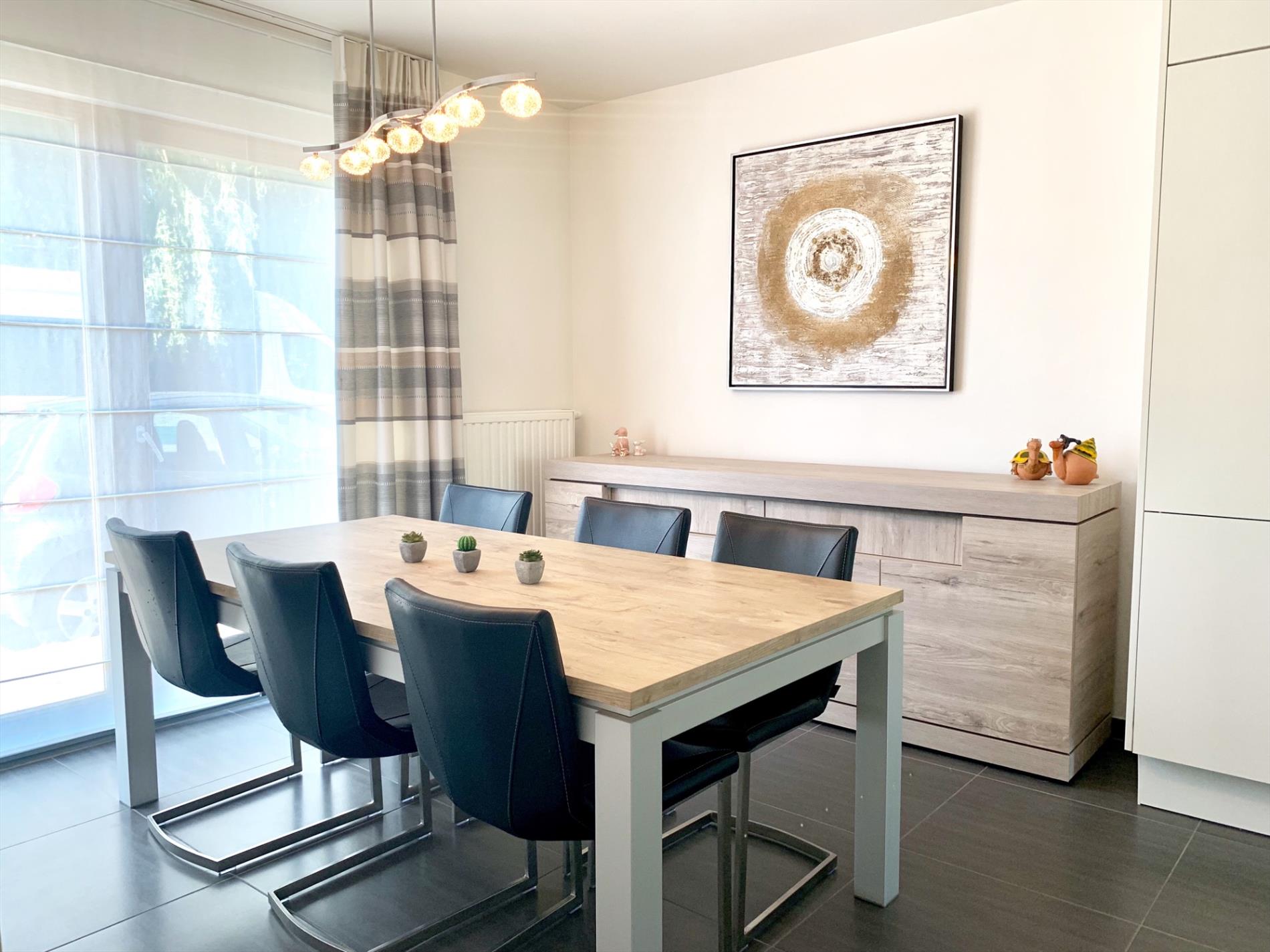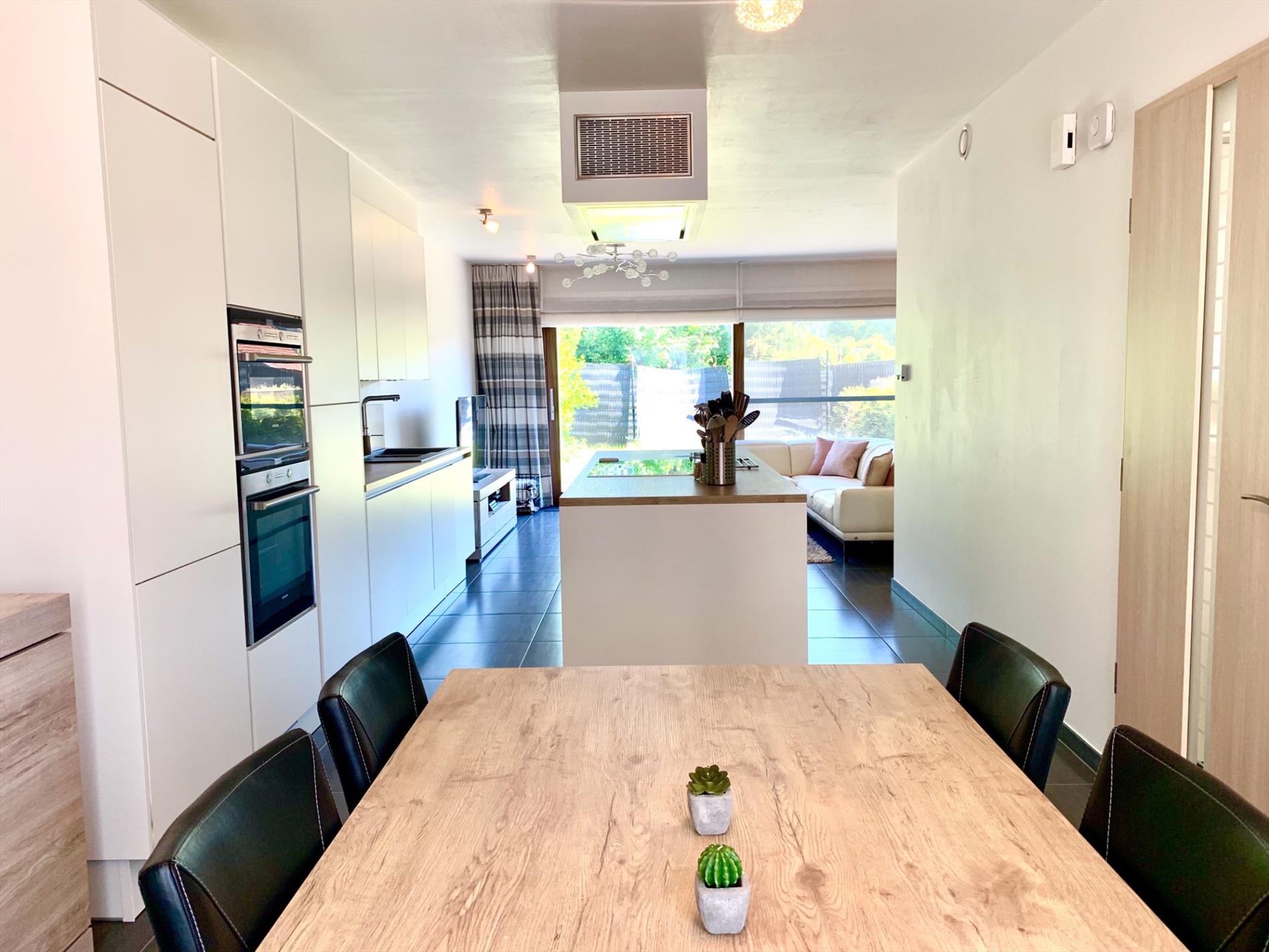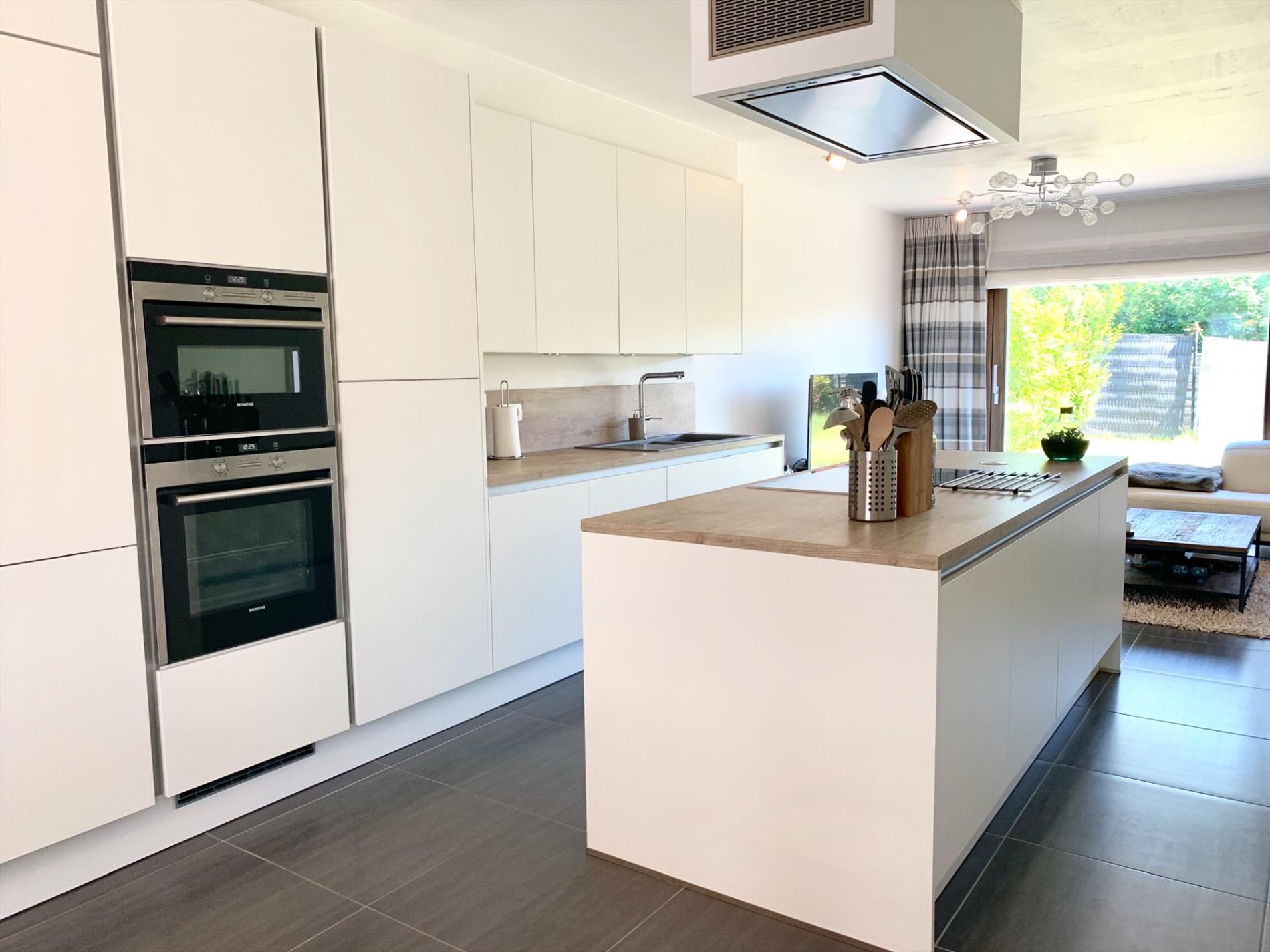 Schrijf u inDeze recente, zeer ruime rijwoning (2014) heeft een prachtige open woonkamer/keuken incl alle nodige toestellen en een groot kookeiland. Het dubbel schuifraam zorgt voor een enorme lichtinval. Van hieruit gaat u naar het terras en de tuin.