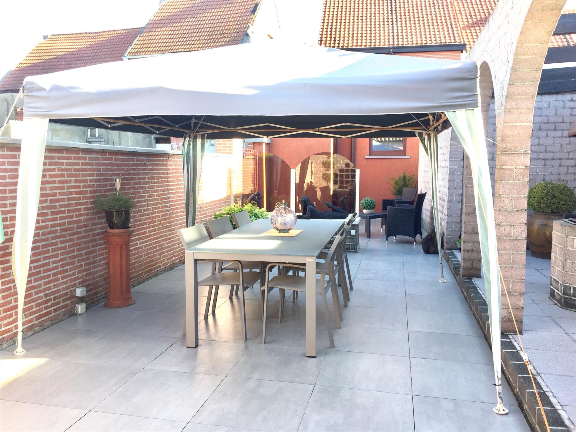 Schrijf u inDeze perfect onderhouden hoekwoning is volledig instapklaar en is rustig gelegen, doch op wandelafstand van het centrum van Zelzate. Op het gelijkvloers bevinden zich een grote woonkamer met open keuken incl. alle nodige toestellen, een ruime badkamer met ligbad, dubbel lavabomeubel, toilet en aparte douche. Op de eerste verdieping zijn er 2 mooie slaapkamers en ook de zolderruimte, bereikbaar met vaste trap, is volledig ingericht als master bedroom. Overal ligt er onderhoudvriendelijke laminaat en is er verwarming aanwezig. Ook de binnentuin is een pareltje. De vloer is betegeld en onder de pergola werd een vaste BBQ geplaatst. Vanaf het terras kan u zowel naar de straatkant alsook naar de aangebouwde garage.