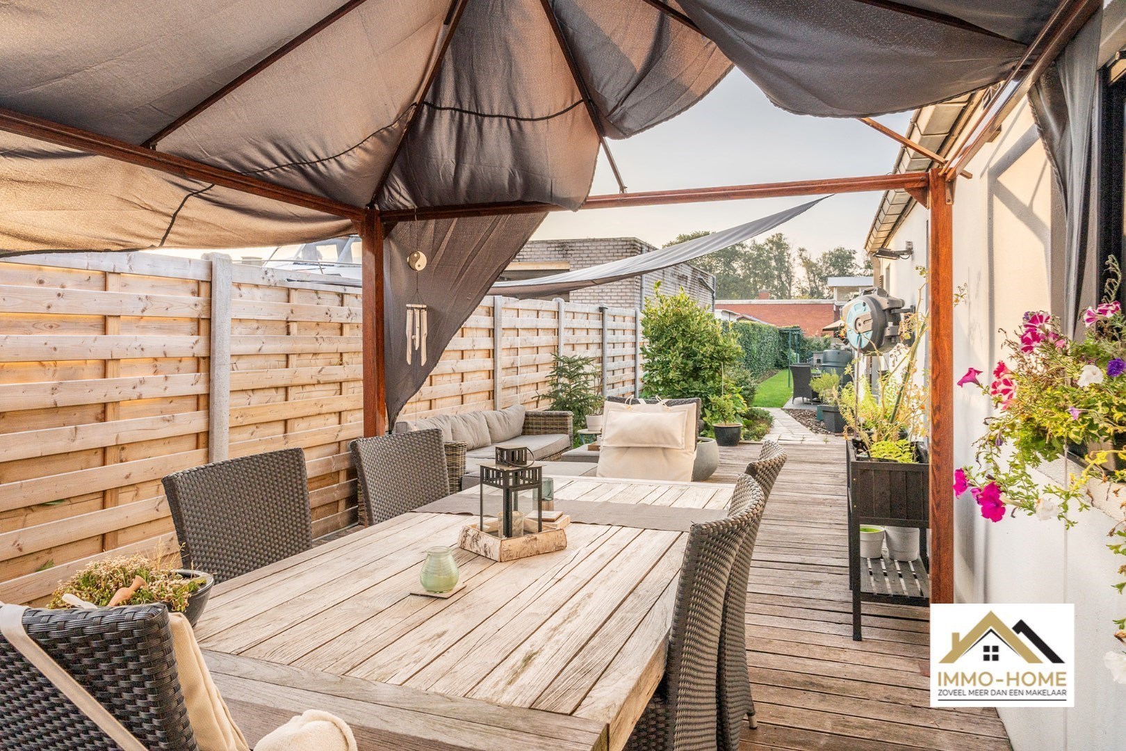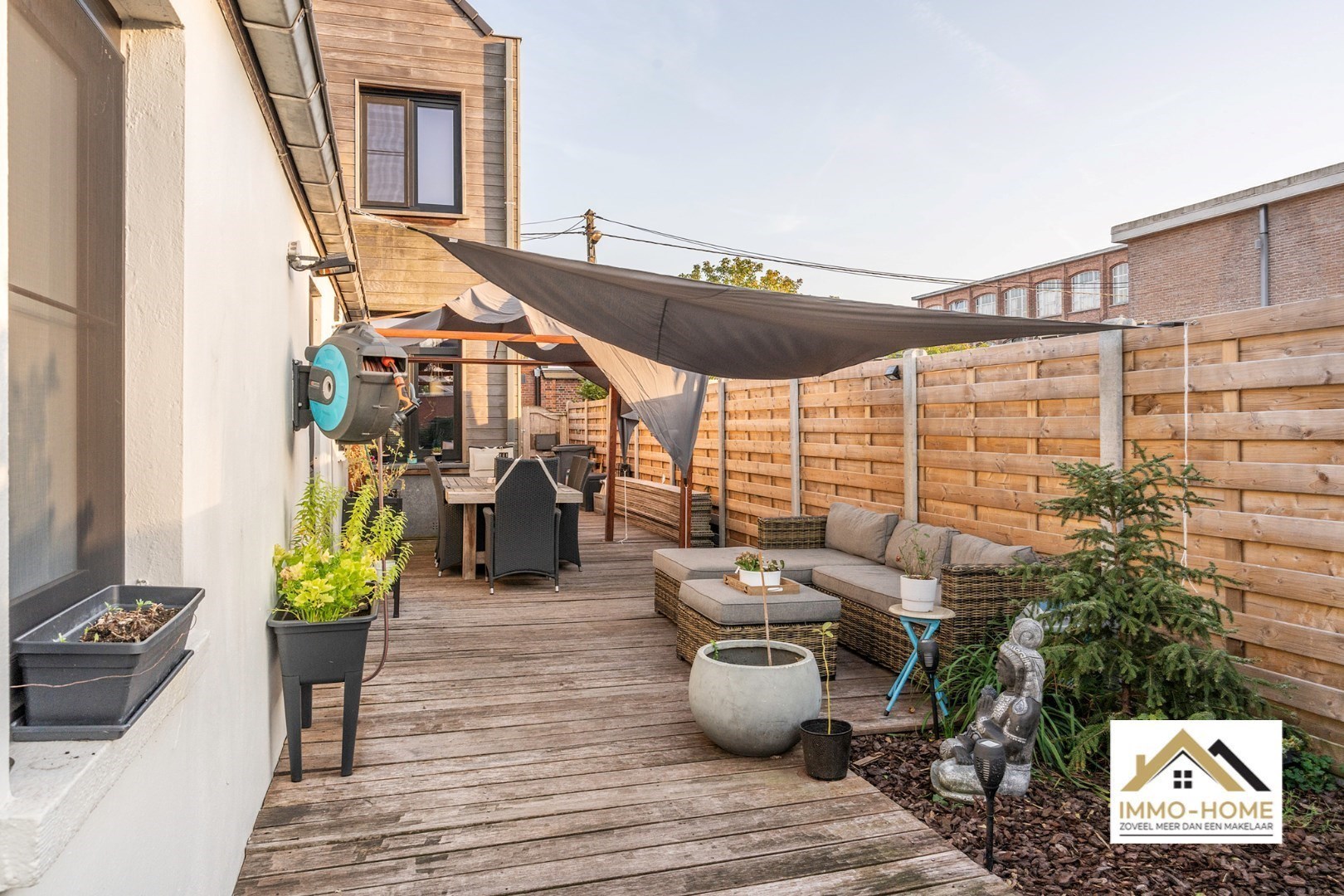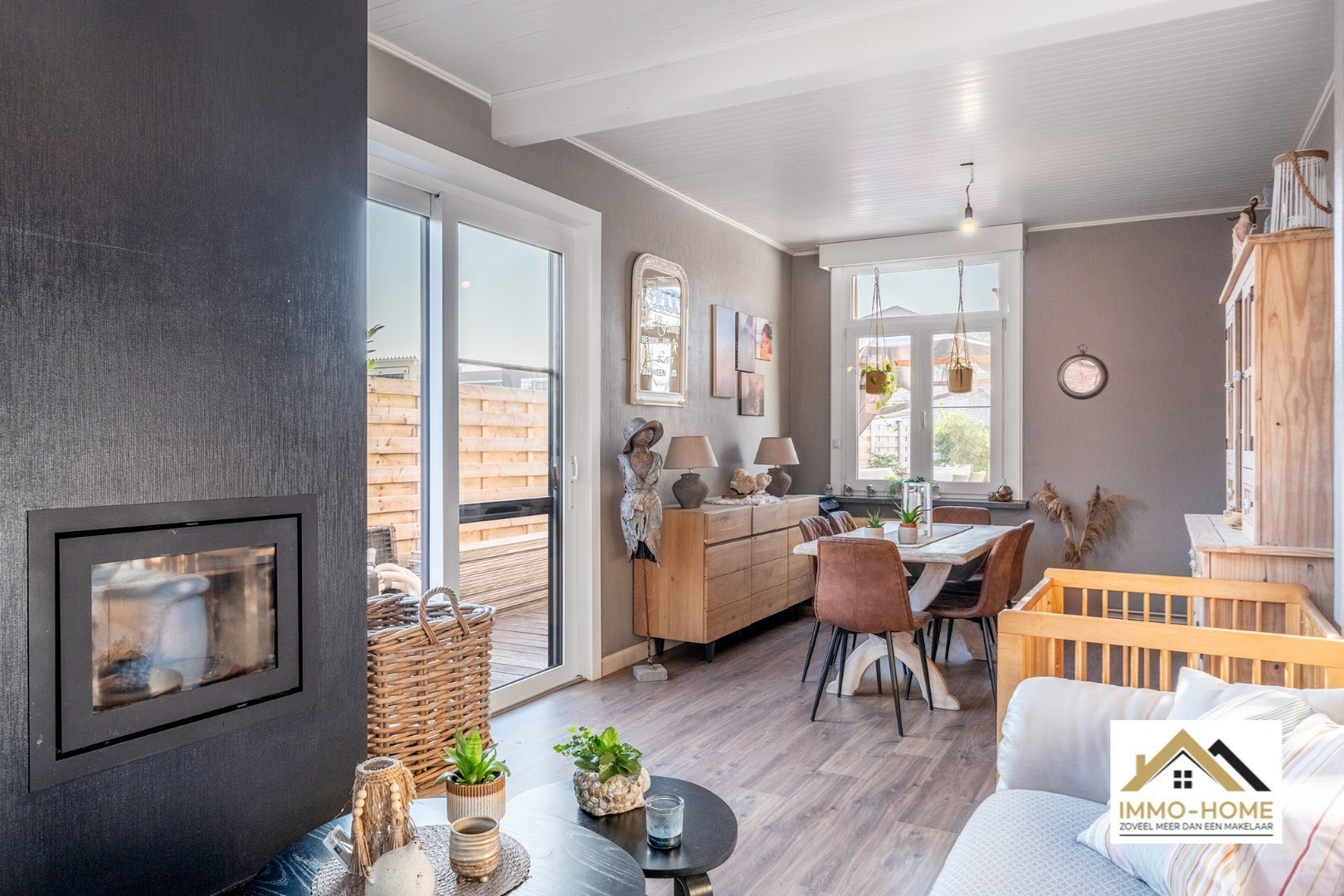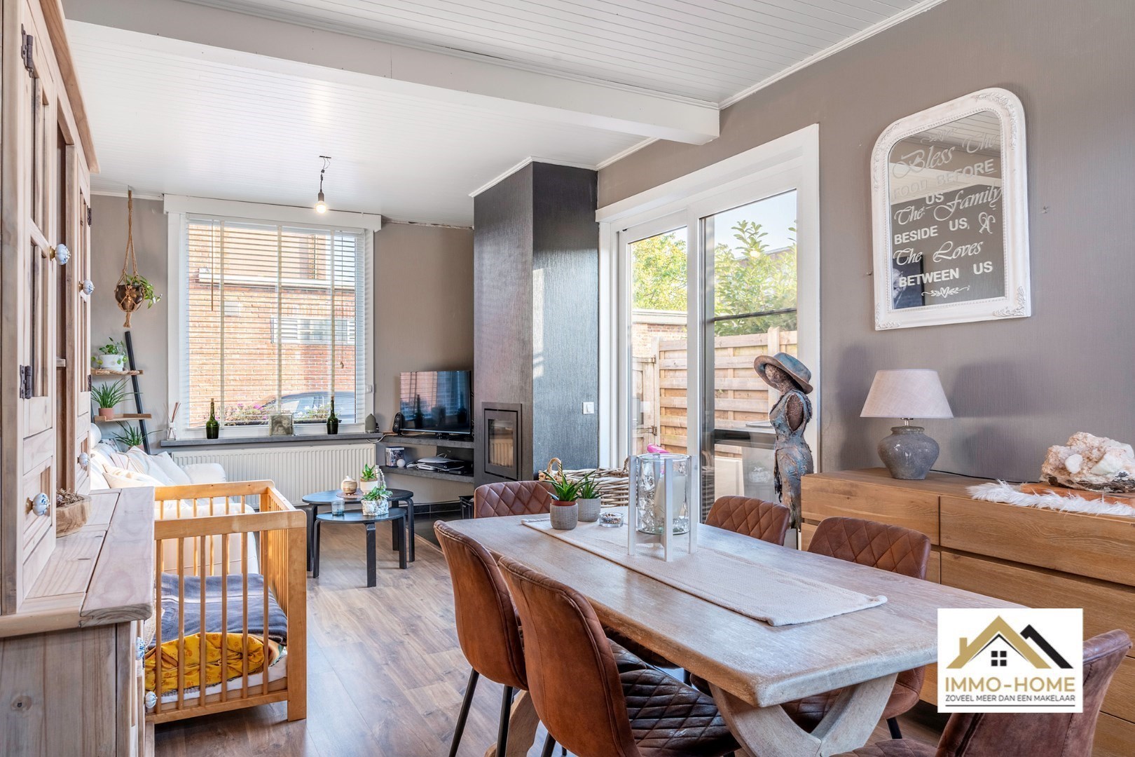 Schrijf u inOp zoek naar een gezellige woning met een mooie tuin, in een rustige omgeving ? Dan is dit pand misschien wel je kans ! Via een ruime inkomhal (met vestiaire) kom je tot in de heel aangename leefruimte. De meerdere raampartijen zorgen voor een leuke lichtinval, en een groot schuifraam brengt je bovendien tot op het terras. In de koude wintermaanden zorgt de haard voor instant gezelligheid, en de warme vloertint doet de rest. Achteraan de woning bevindt zich de leefkeuken, die eveneens heel aangenaam aanvoelt qua sfeer. Het centrale eiland is een combinatie van opbergruimte en eettafel, en alle moderne comfort is aanwezig. Een handige koele berging is eveneens voorzien. Aanpalend is de riante badkamer met grote inloopdouche ingepland. Hier is ook plaats voor een groot lavabomeubel en een toilet, en een handig ingerichte wasplaats. Op de eerste verdieping bevinden zich de eerste twee slaapkamers, en op de zolderverdieping is de derde slaapkamer ondergebracht. Deze beschikt over een aparte dressing. Genieten van het buitenleven is rond deze woning geen enkel probleem : dat kan niet alleen op het ruime sfeervolle terras, maar ook in de aansluitende tuin. Hier is bovendien voorzien in een aantal extra opbergruimtes. Ook superhandig is dat het terras bereikbaar is via een poort aan de linkerkant van de woning, waardoor je met bijvoorbeeld je fietsen probleemloos tot in de bergingen kan komen. Bezoekdag op zaterdag 24/05 Inschrijvingen via mail naar xenia@immo-home.be. Volg ons op Fb en insta. Voor meer info: www.immo-home.be. GRATIS SCHATTING GRATIS FINANCIEEL ADVIES