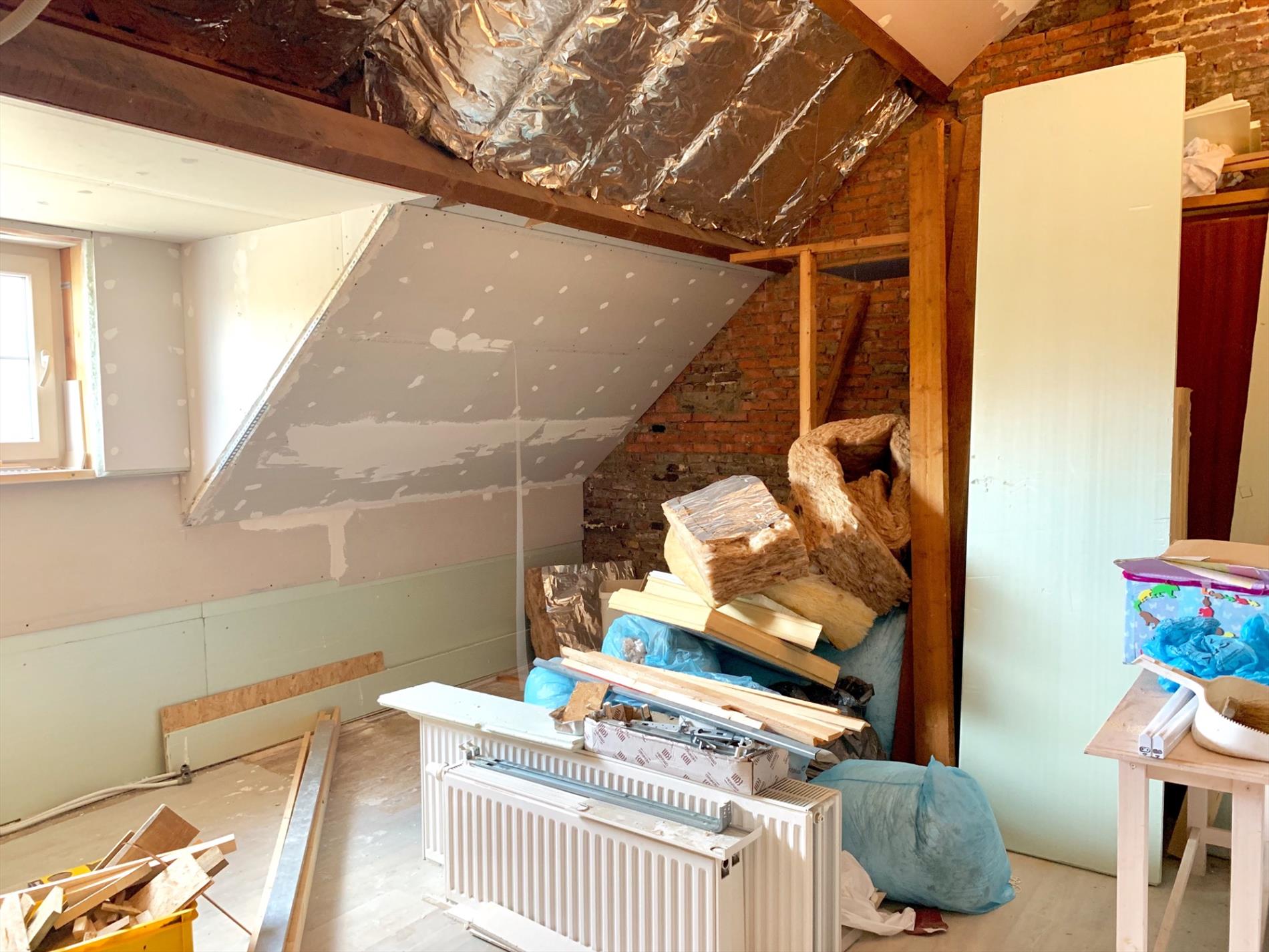 Op de eerste verdieping bevinden zich 3 slaapkamers (22-20-11 m2), waarvan er nog 2 verder afgewerkt dienen te worden. De eerste slaapkamer is reeds afgewerkt en heeft ook een inloop-dressingroom. De badkamer heeft een opfrissing nodig. Er is zeker ruimte genoeg om een inloop douche te plaatsen.