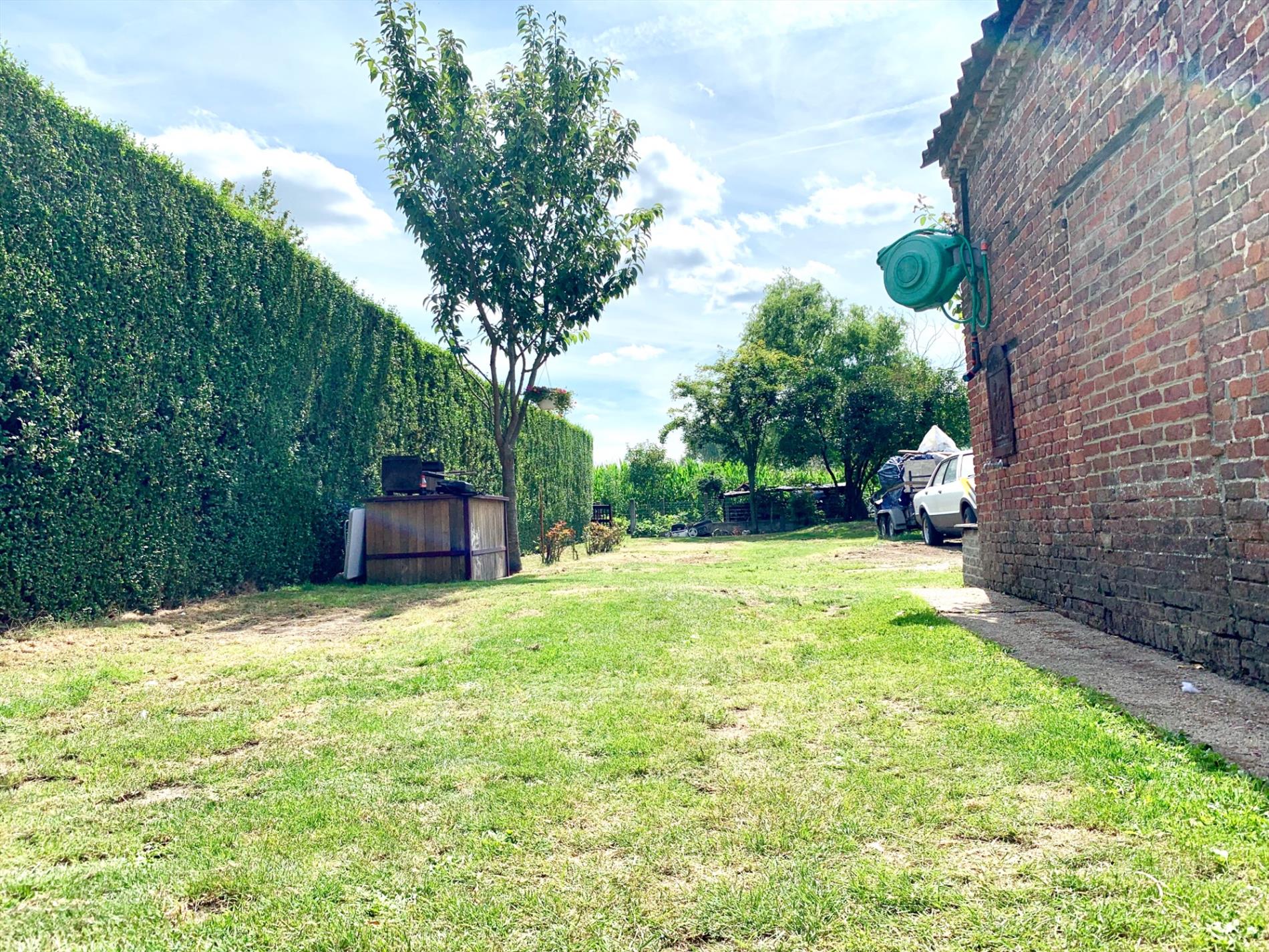 De rustgevende tuin in volledig zuidgericht en kijkt uit op de velden. U kan tot achteraan rijden met de auto en fietsen.
