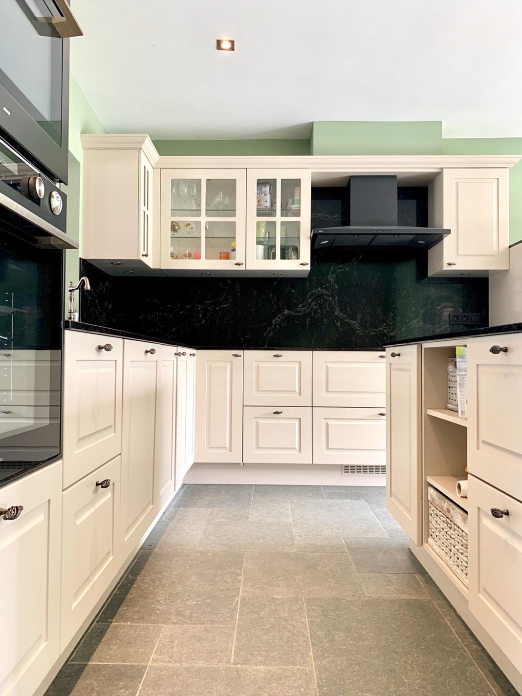 Deze woning werd op het gelijkvloers volledig gerenoveerd en heeft een ruime woonkamer (45m2) met nieuwe open keuken (32m2)incl alle nodige toestellen. Ook de wasplaats en het gastentoilet zijn gerenoveerd.