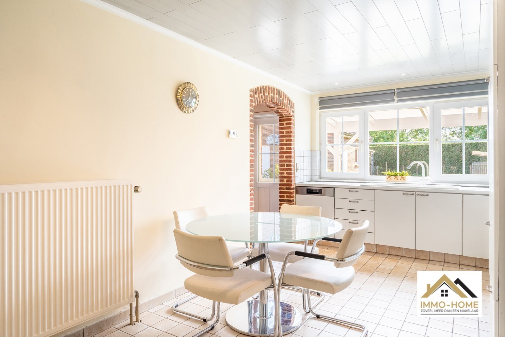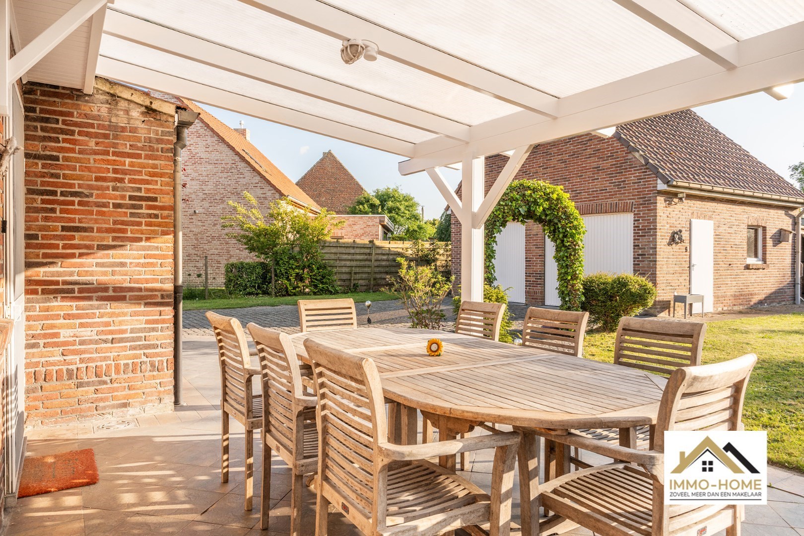 Schrijf u inDeze charmante woning ontvangt je in een ruime inkomhal, met toegang tot een gastentoilet en met ruimte voor een vestiaire. Zo kom je verder tot in de landelijk ingerichte leefruimte, waar je zowel voor- als achteraan voldoende natuurlijke lichtinval hebt. De raampartijen zorgen ook voor het aangename contact met de omgeving en de tuin, en dat is zeker het geval in het achterste gedeelte van de living die aanvoelt als een tuinkamer, door het grote schuifraam achteraan. Een tussenhalletje brengt je verder tot in de aanpalende leefkeuken, die zeer ruim is qua oppervlakte en praktisch is ingedeeld. Kokerellen doe je met zicht op het overdekte terras en de tuin, en in de er net naast gelegen grote berging/wasplaats is er nog veel extra opbergruimte beschikbaar. De laatste ruimte die we op het gelijkvloers terugvinden is de moderne badkamer met een riante inloopdouche. Op de eerste verdieping is er plaats voor drie slaapkamers, waarbij de master bedroom beschikt over een leuke inloopdressing. Een apart toilet maakt het plaatje compleet. Op het einde van de ruime oprit is er voorzien in een grote dubbele garage, met daarbovenop nog eens heel wat extra opbergruimte. Genieten van het buitenleven doe je in de ruime, volledig afgesloten én westelijke georiënteerde tuin. Inschrijvingen via mail naar tommy@immo-home.be, geen telefonische inschrijvingen! Volg ons op Fb en insta. Voor meer info: www.immo-home.be GRATIS SCHATTING GRATIS FINANCIEEL ADVIES