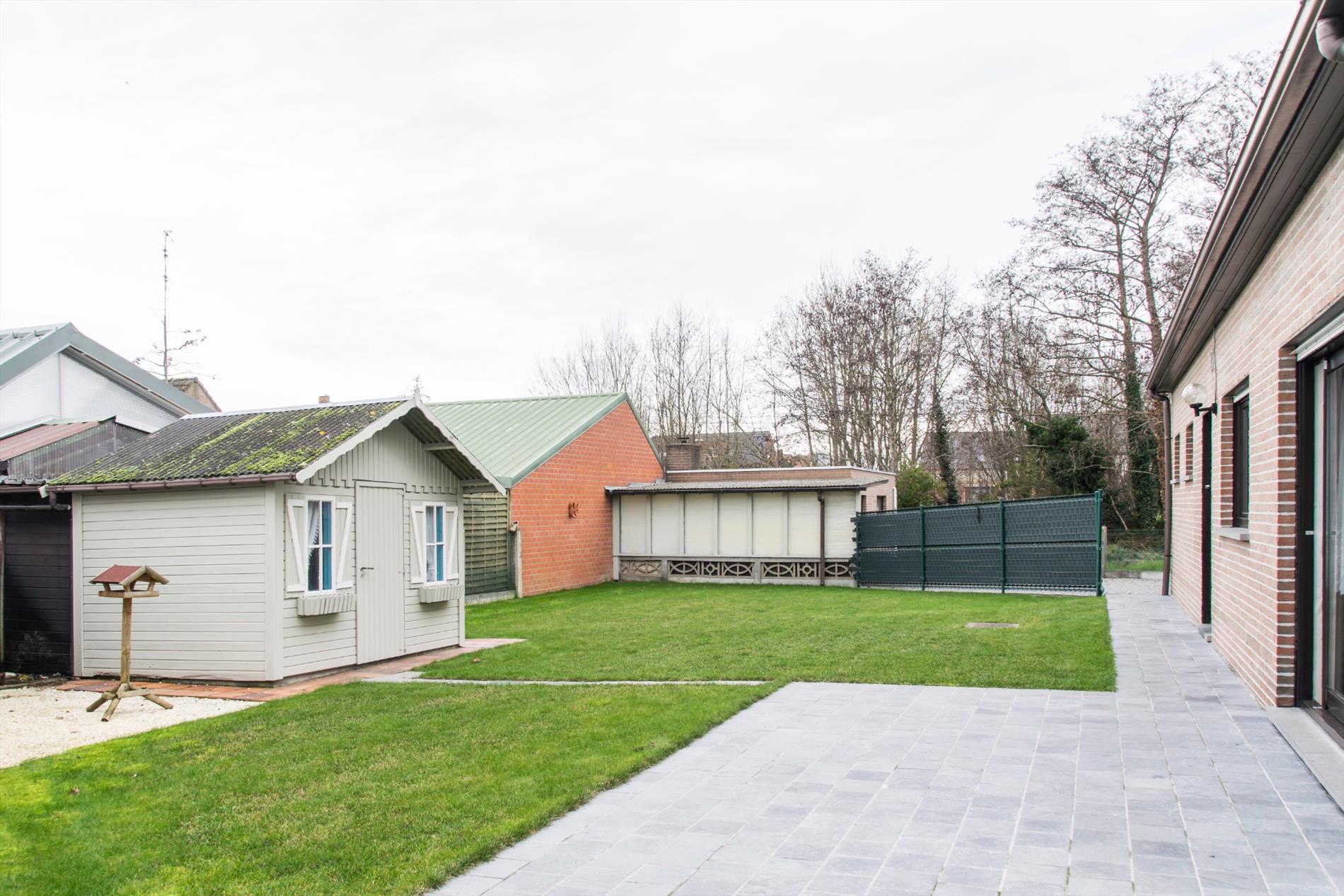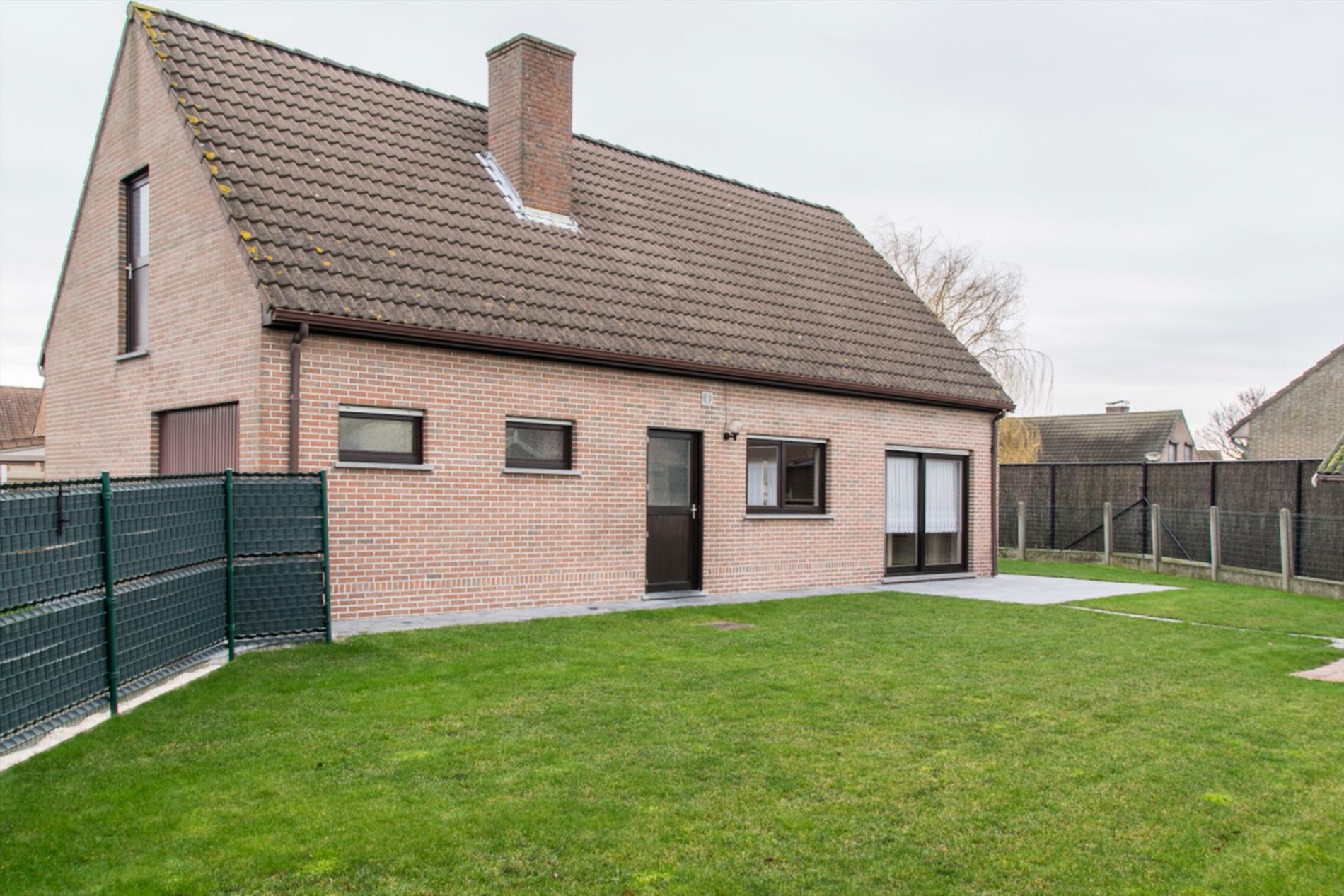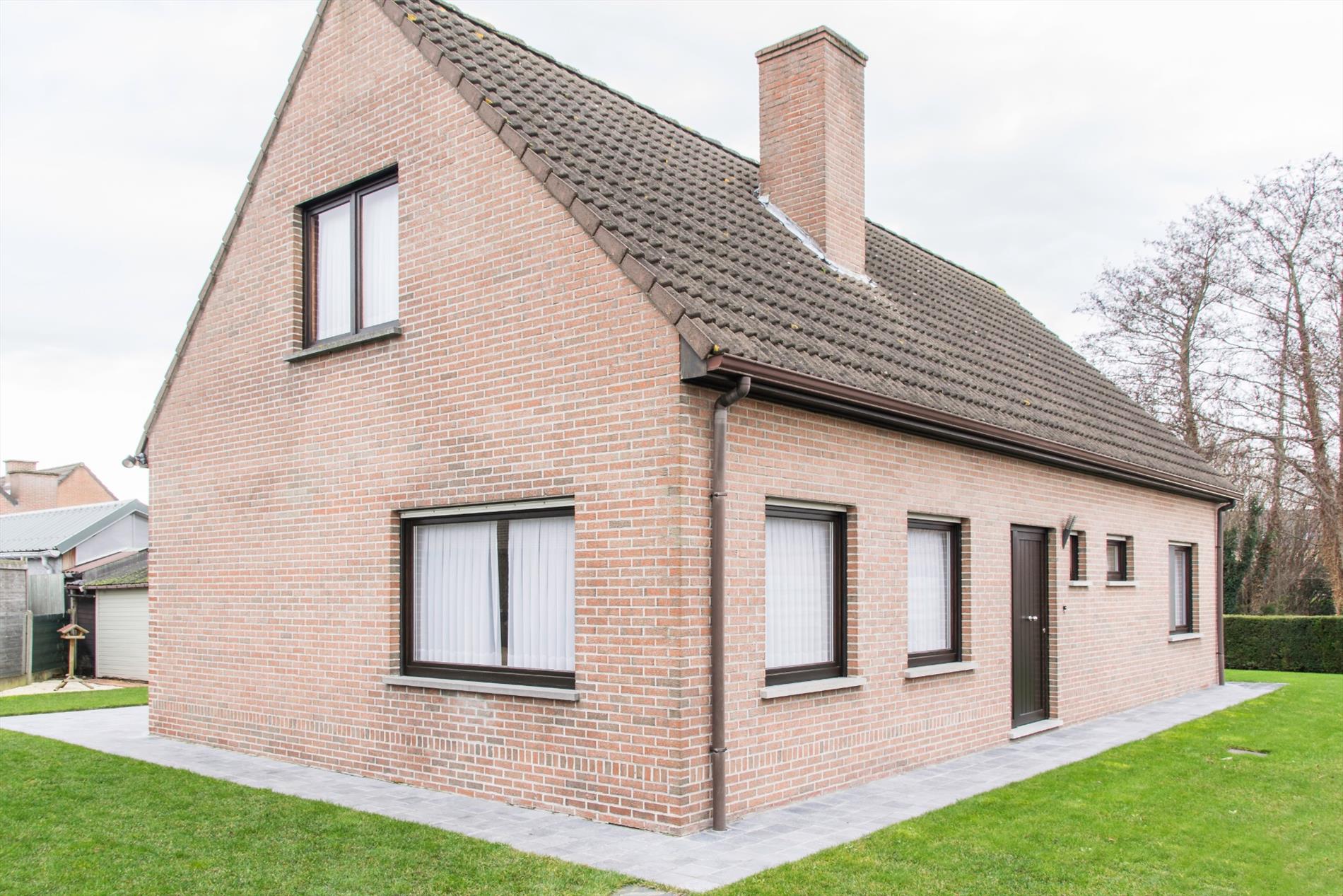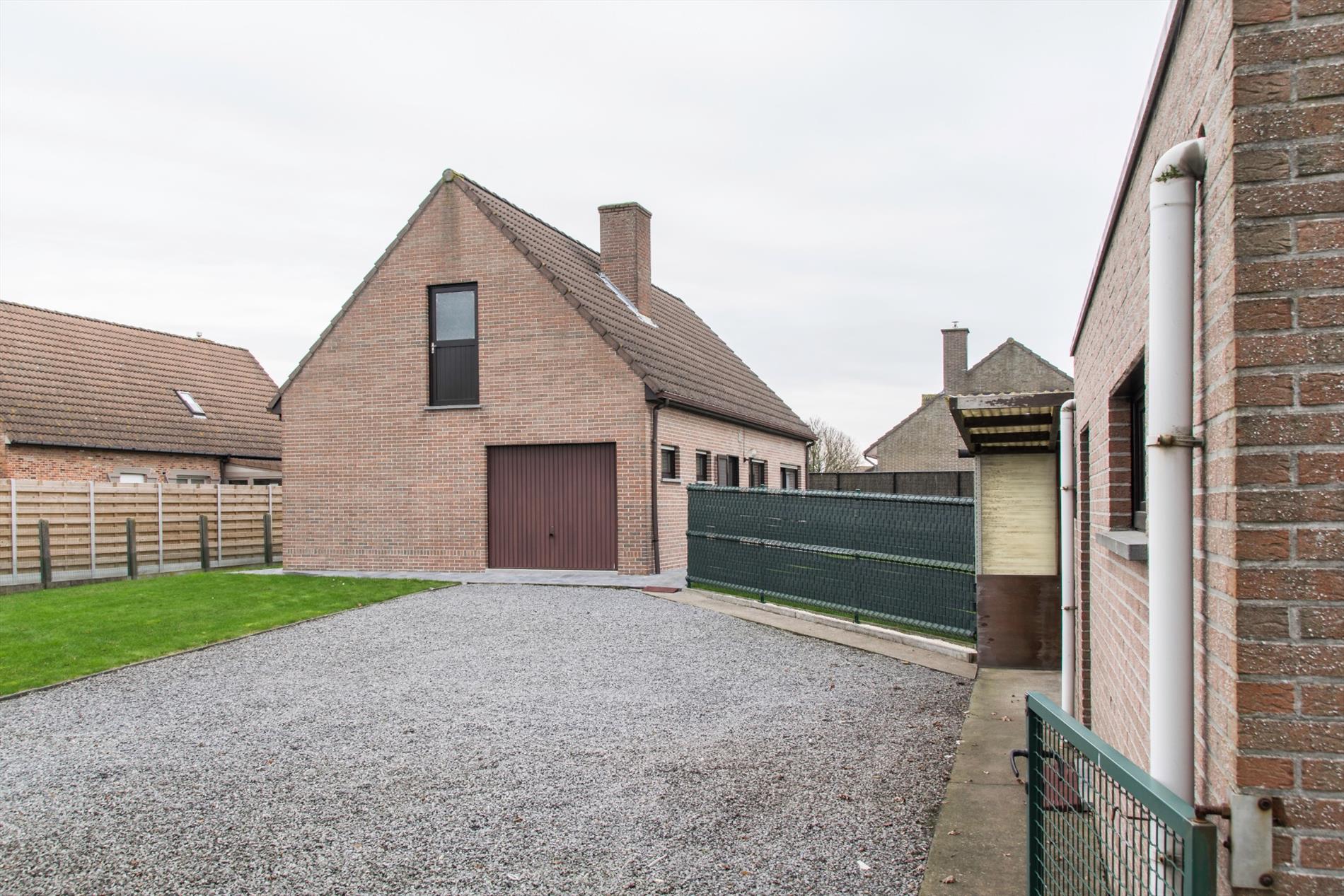 Deze woning is gelegen in een zeer rustige hoek van een verkaveling. Ze is bereikbaar langs de verkaveling zelf, maar ook langs een private weg aan de achterzijde (waar zich ook de twee garages en carport bevinden). Op het gelijkvloers heb je een ruime centrale inkomhal met aansluitend gastentoilet. Aan de ene kant kom je in de mooi, lichtrijke leefruimte terecht. De zithoek heeft een gezellige houtkachel, en via een groot schuifraam heb je toegang tot het zonovergoten terras. De praktische keuken heeft een aanpalende bergruimte, met eveneens toegang tot de tuin. Aan de andere kant van de inkomhal heb je toegang tot de badkamer en de enige slaapkamer. De grootste troef van dit huis bevindt zich echter in de garage : van daaruit heb je toegang tot de massief grote zolderruimte die nog verder kan ingericht worden , met een beetje verbeelding is hier ruimte voor allerlei extra vertrekken. De betonnen gewelven bieden alvast een stevige basis voor uw grootse plannen.