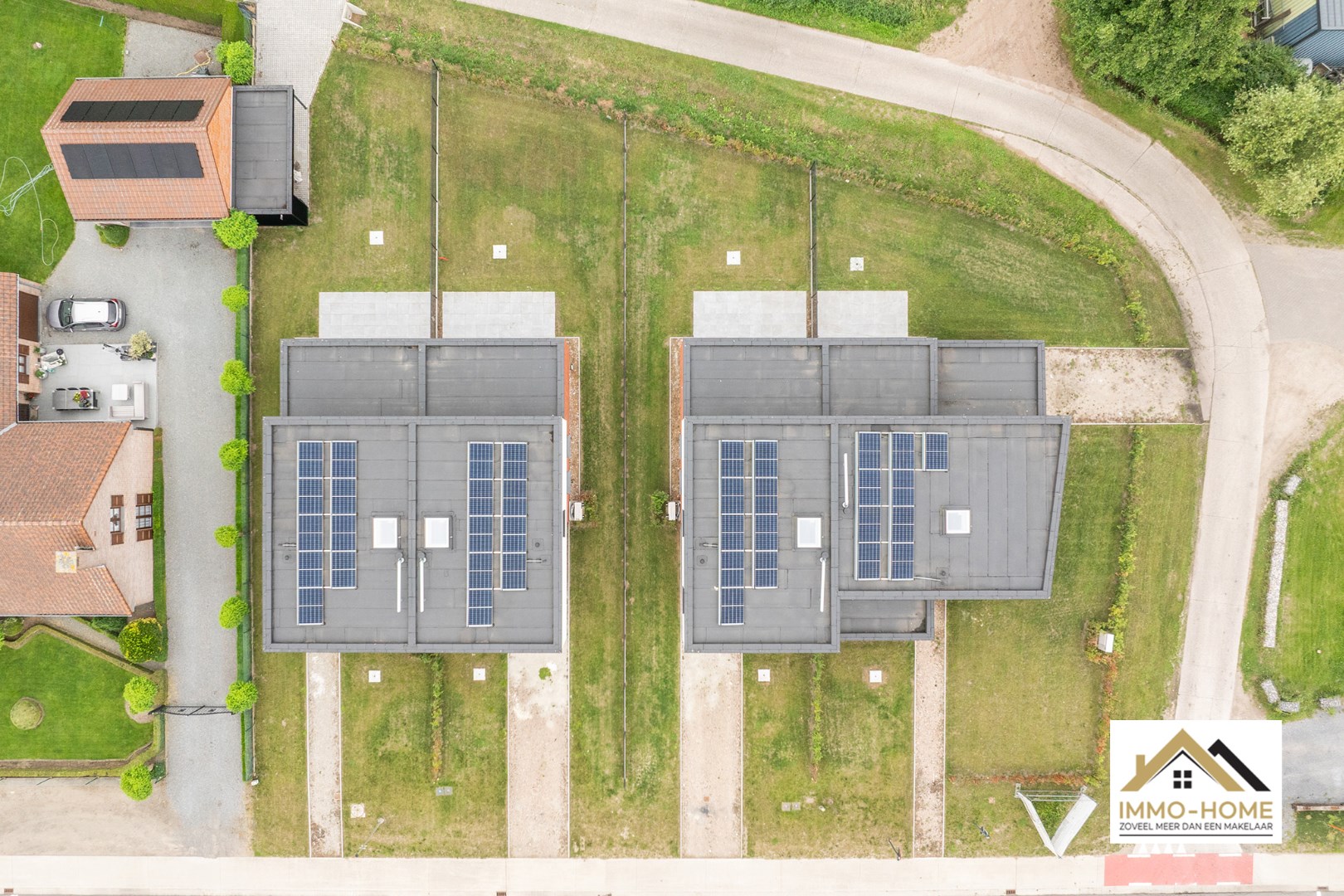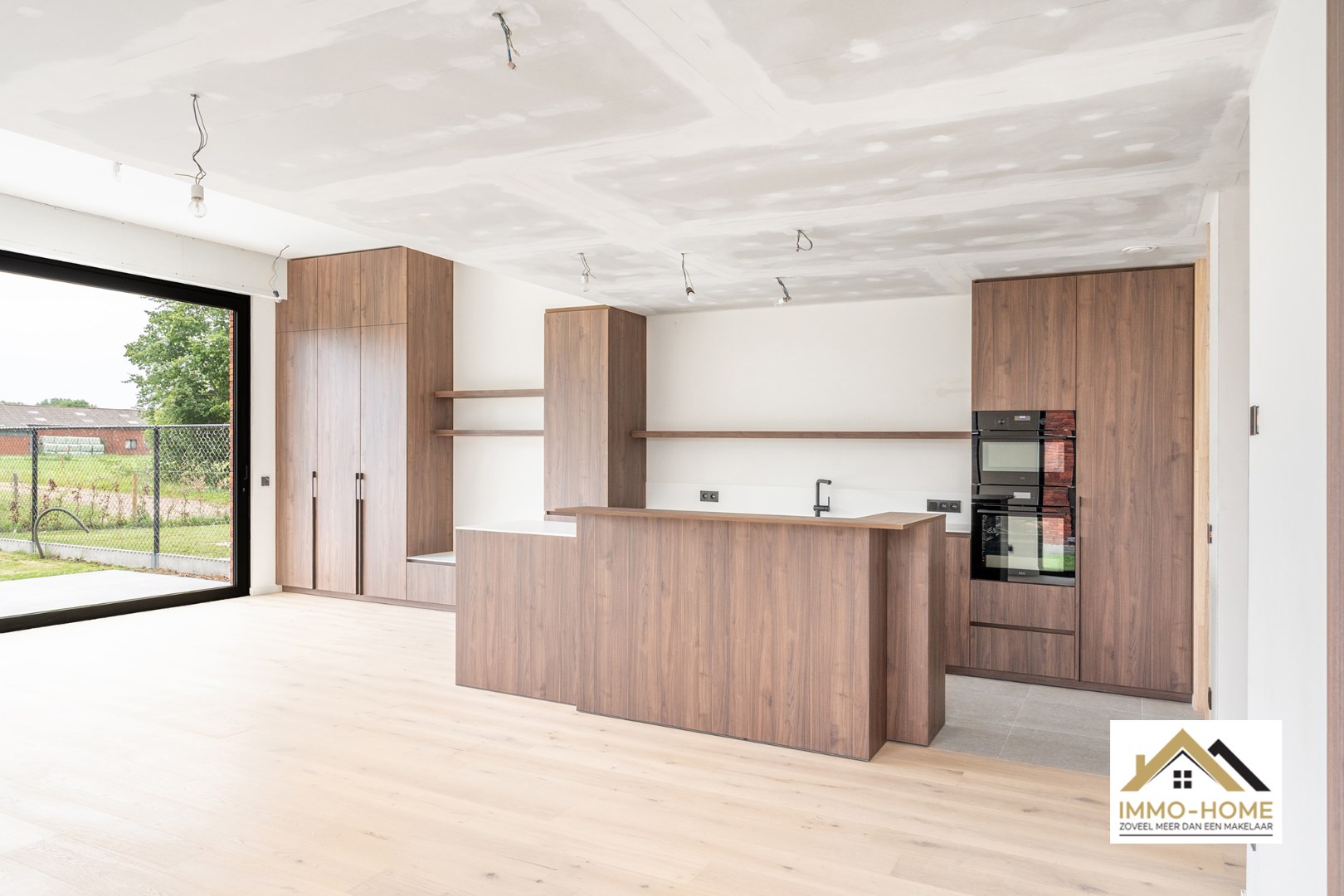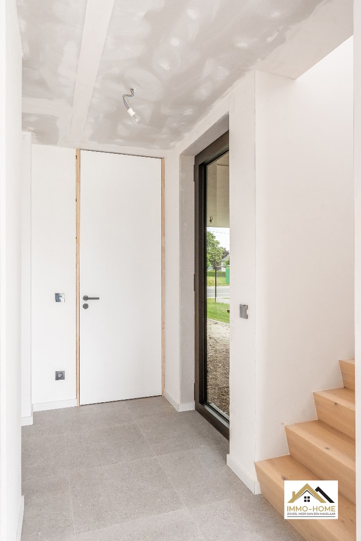 Deze prachtige BEN-woningen vormen een bijzonder ijkpunt in het landschap. Hun moderne architectuur is gecombineerd met een uitstekende materiaalkeuze en een doordachte indeling. Via een eigen ruime oprit kom je tot aan een dubbele toegang : enerzijds is er een ruime fietsenberging die je via de technische ruimte met veel plaats voor oa. wasmachine tot in de keuken brengt, en anderzijds is er een mooie inkomhal (met gastentoilet) waar je je vrienden en familie in stijl ontvangt. Zo kom je ook verder tot in de zeer lichtrijke leefruimte met klassevolle open keuken, met de bijzondere aandachtstrekker die het landelijke achterland vanuit elke hoek van de ruimte vormt. De gevelbrede en hoge raampartij achteraan zorgt ervoor dat de omgeving bijna letterlijk de woning wordt binnengetrokken. Op de eerste verdieping is er rond de ruime overloop plaats voor drie mooie slaapkamers, een apart toilet en een luxueuze badkamer met zowel een riante inloopdouche als een ligbad. Genieten van het buitenleven en het uitzicht kan je doen in de mooie omheinde tuin. De zonnepanelen op het dak zorgen voor je eigen energie, en de vloerverwarming zorgt voor een heel aangenaam binnenklimaat. Inschrijven voor bezoekdag op zaterdag 05/07 via mail naar xenia@immo-home.be, geen telefonische inschrijvingen! Volg ons op Fb en Insta. Voor meer info: www.immo-home.be. GRATIS SCHATTING & GRATIS FINANCIEEL ADVIES